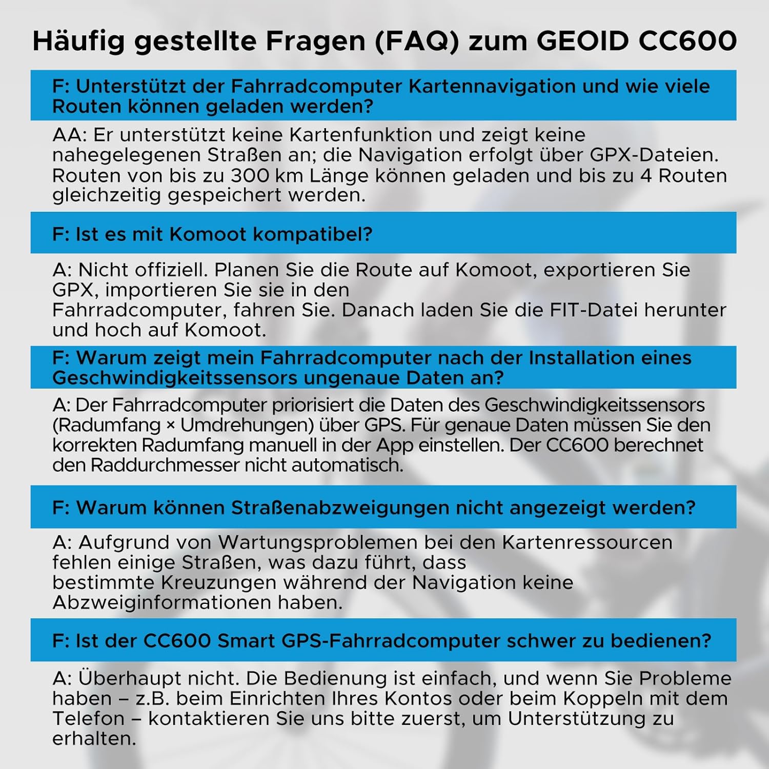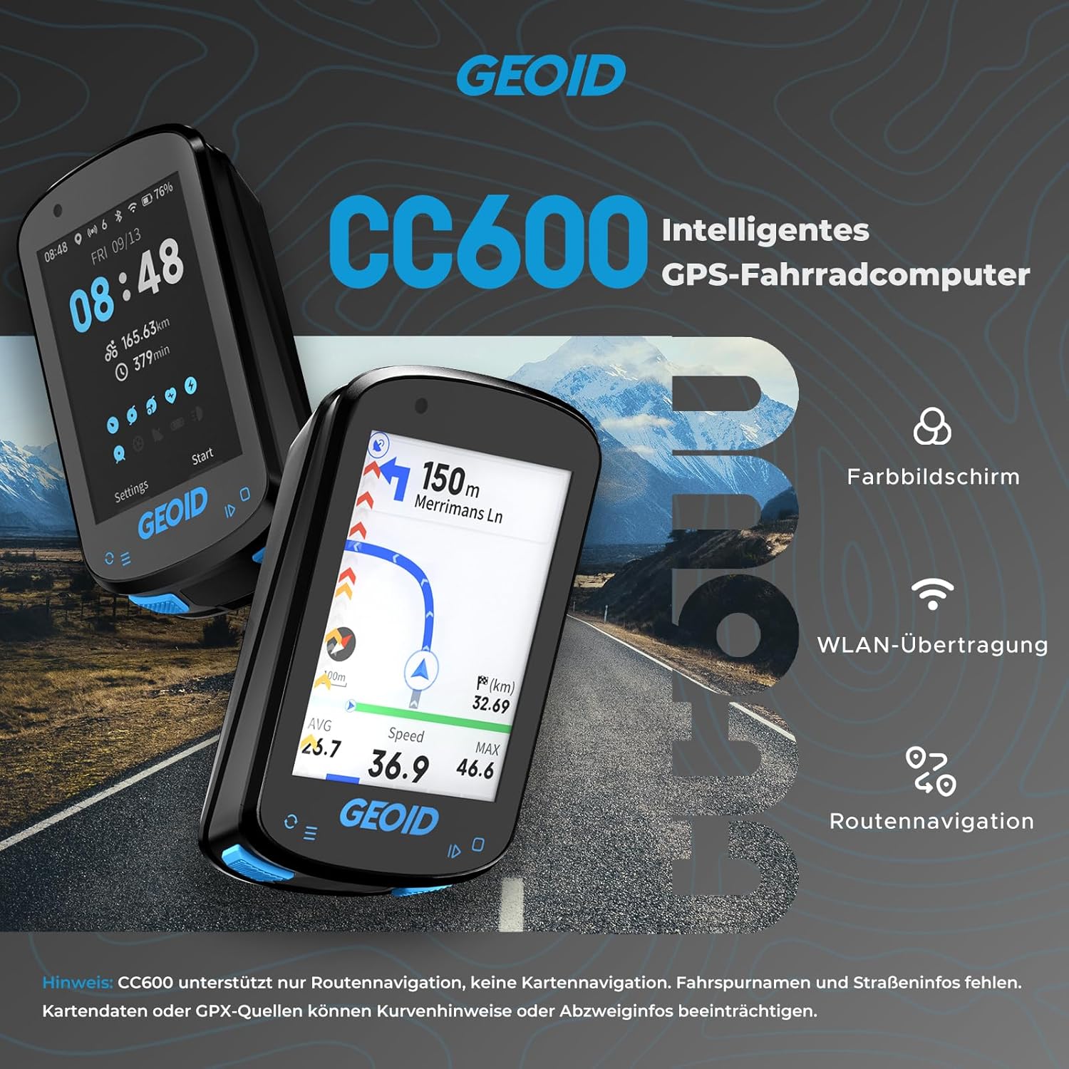 Top-Angebot: GEOID CC600 GPS Bicycle Computer, 2.4 Inch Colour Screen, Wireless Waterproof Bicycle Speedometer, Route Navigation, Custom Data, Multiple Languages, WiFi & Bluetooth & ANT+