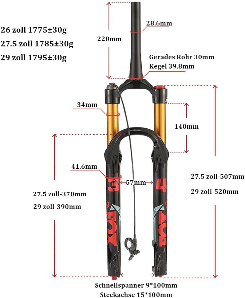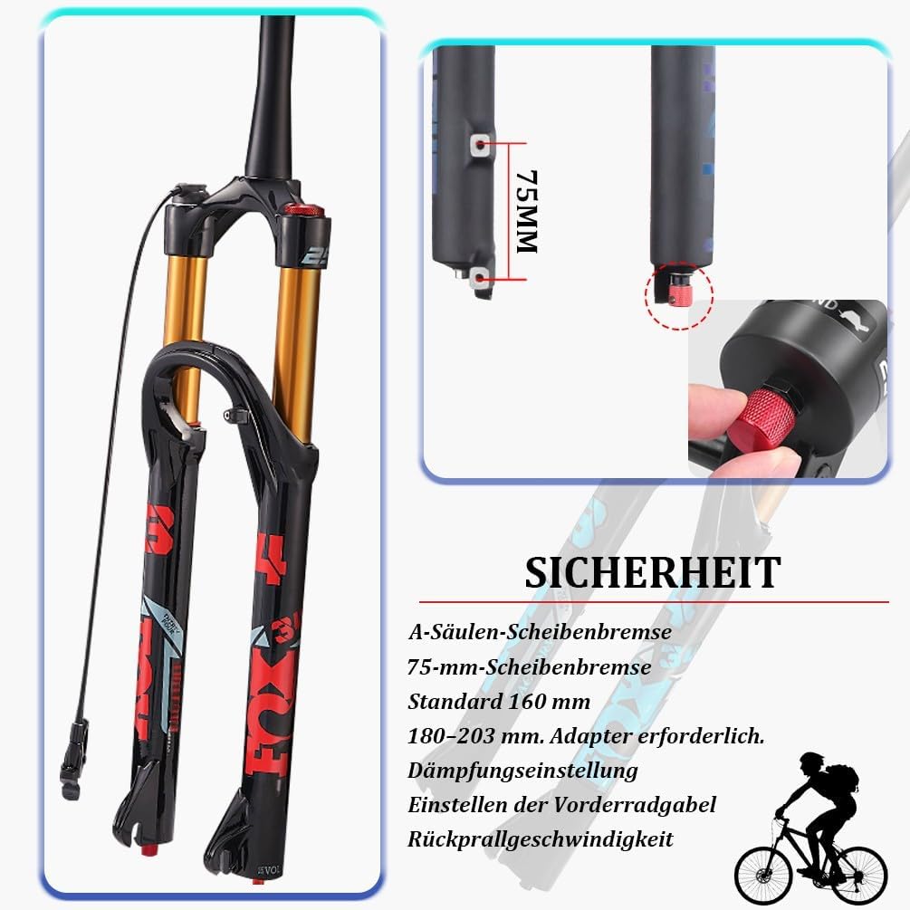 Jetzt entdecken: GJYDPU Suspension Fork MTB 26/27.5/29 Inch Straight (1-1/8 Inch) Tapered (1-1/2 Inch) 9 x 100 mm Quick Release 15 x 100 mm Boost Damping Adjustment 140 mm Hub Magnesium Alloy 75 mm Disc Brake