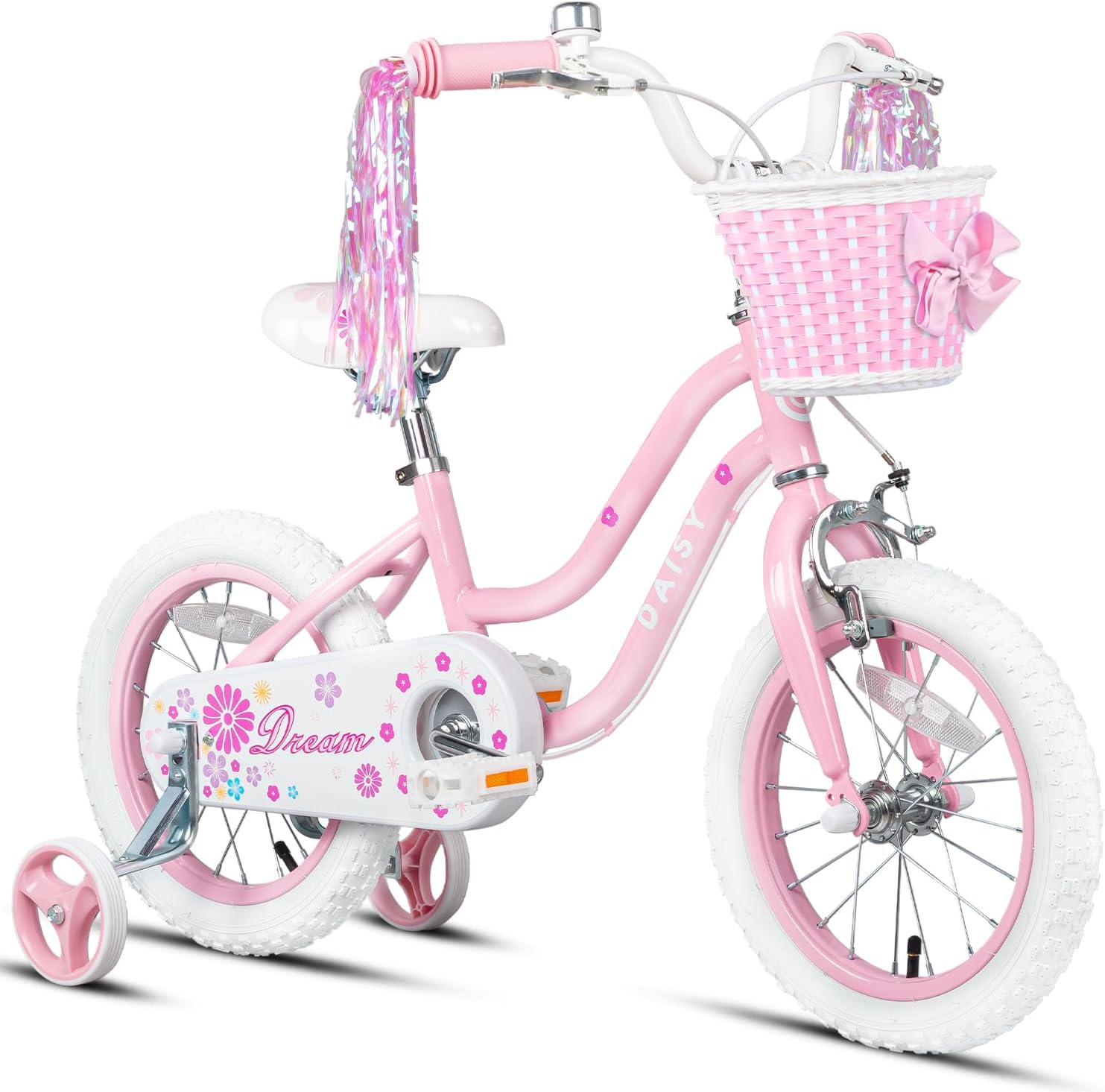 Mit dem Glerc Kids Bike 12/14/16 Inch for 2-7 Years Girls Bicycle with Basket, Streamers, Stabilisers and Bell bekommst du Qualität, Komfort und Stil – perfekt für deine nächste Tour.