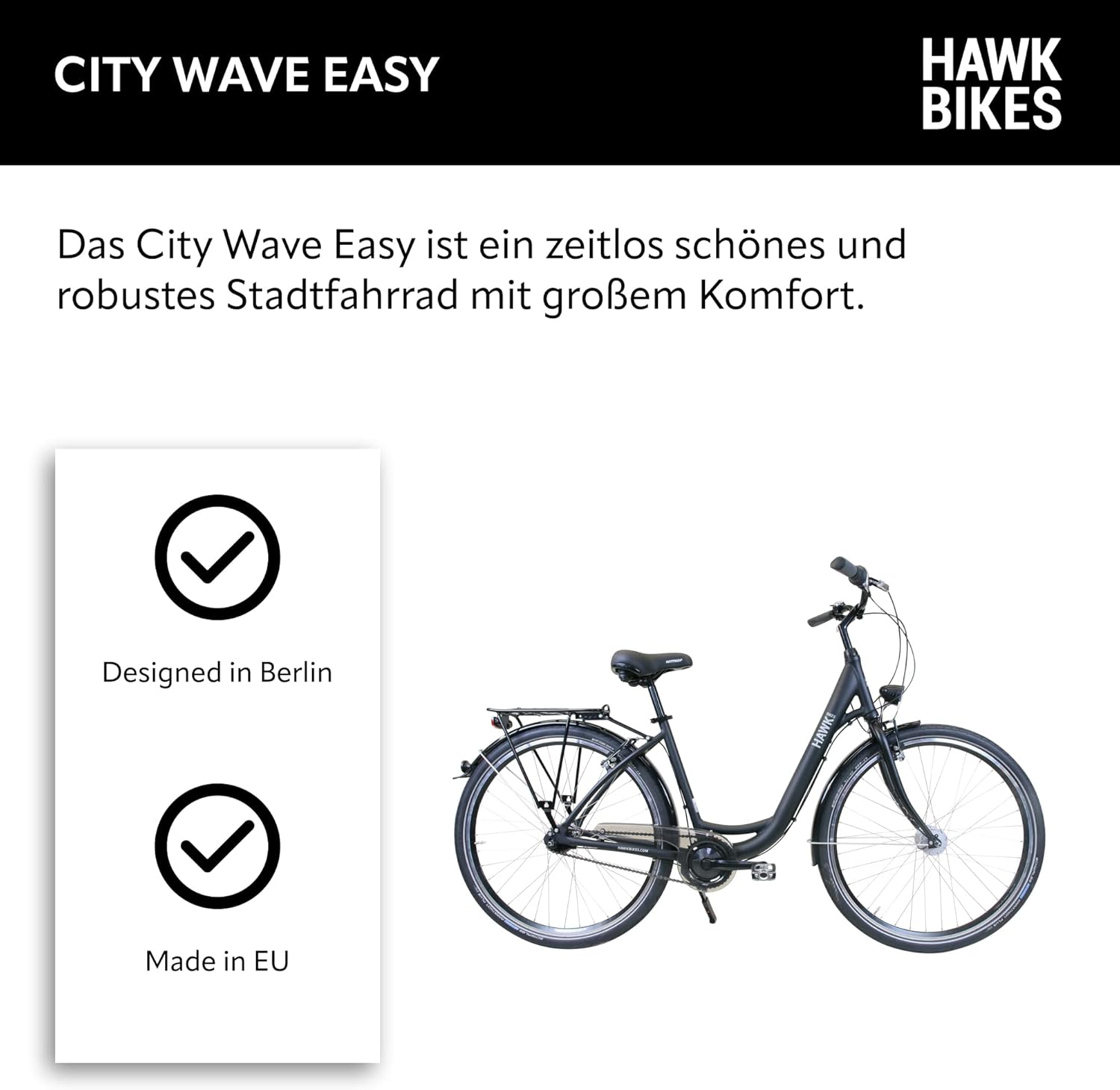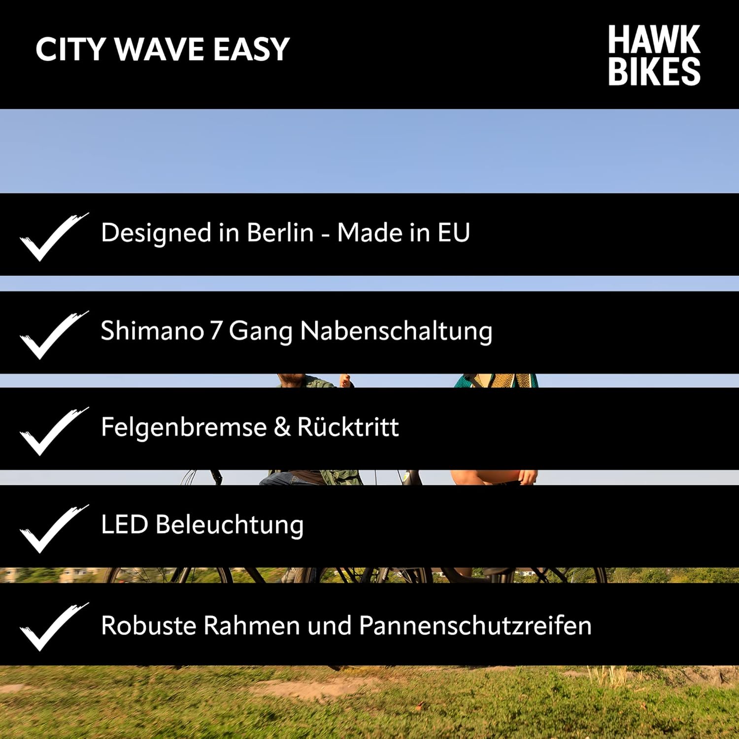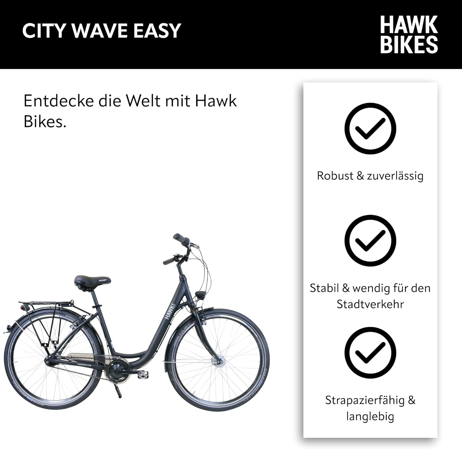 Top-Angebot: HAWK City Wave Easy Women’s Bicycle Black I City Bike I Lightweight Women’s Bicycle 7 Speed Hub Gears, Rim Brake & Hub Dynamo