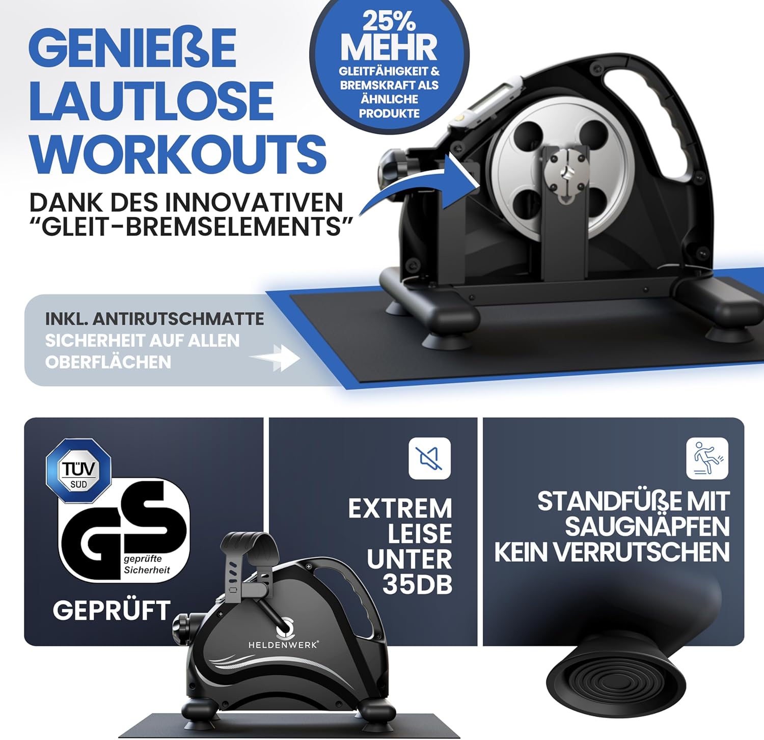 Das HELDENWERK Pedal Trainer Basic Set – TÜV/GS Tested with Attachment Strap and Non-Slip Mat – Arm and Leg Trainer for Home – Seniors Pedal Trainer, Exercise Bike ist ideal für Sportbegeisterte, die ein zuverlässiges Fahrrad suchen.