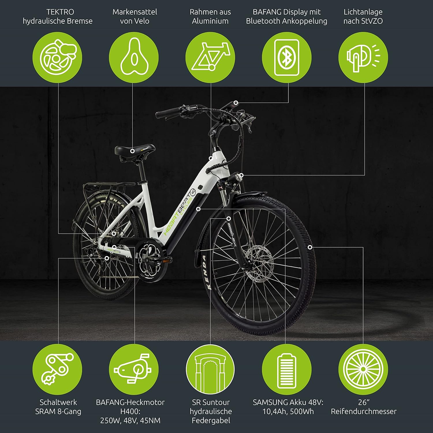 Top-Angebot: Highphoria City E-Bike 26 Inch Low Entry (Women) • Electric Bicycle for City • Bafang Motor 250 W 25 km/h • 8-Speed Gears • Pedelec