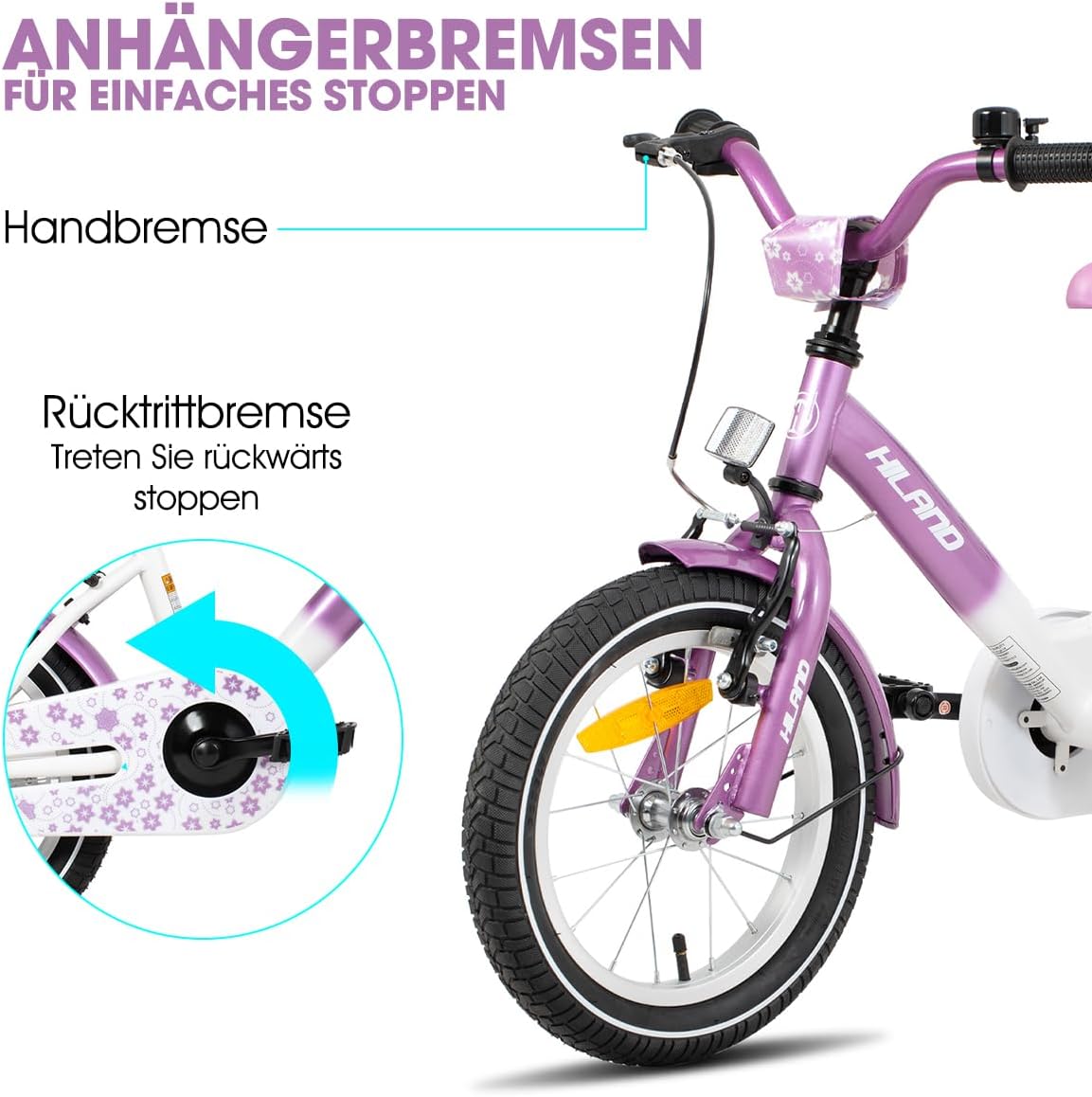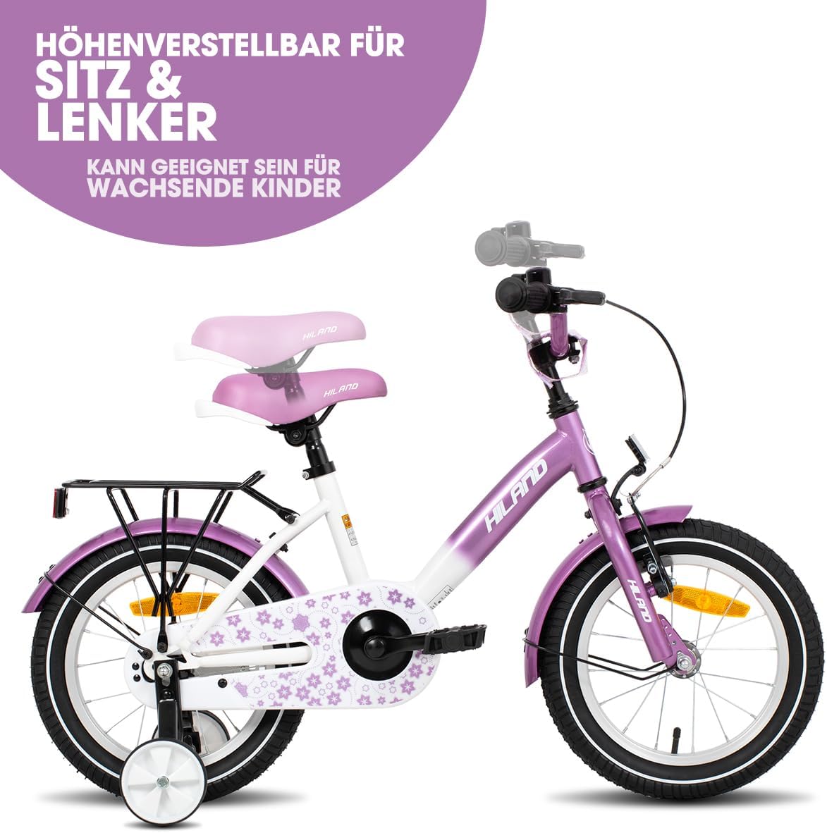 Top-Angebot: HILAND 12/14/16 Inch Children’s Bicycle, Girls‘ Bicycle with Stabilisers, Pink/Purple Children’s Bicycle Handbrake Backpedal Brake Pannier Rack