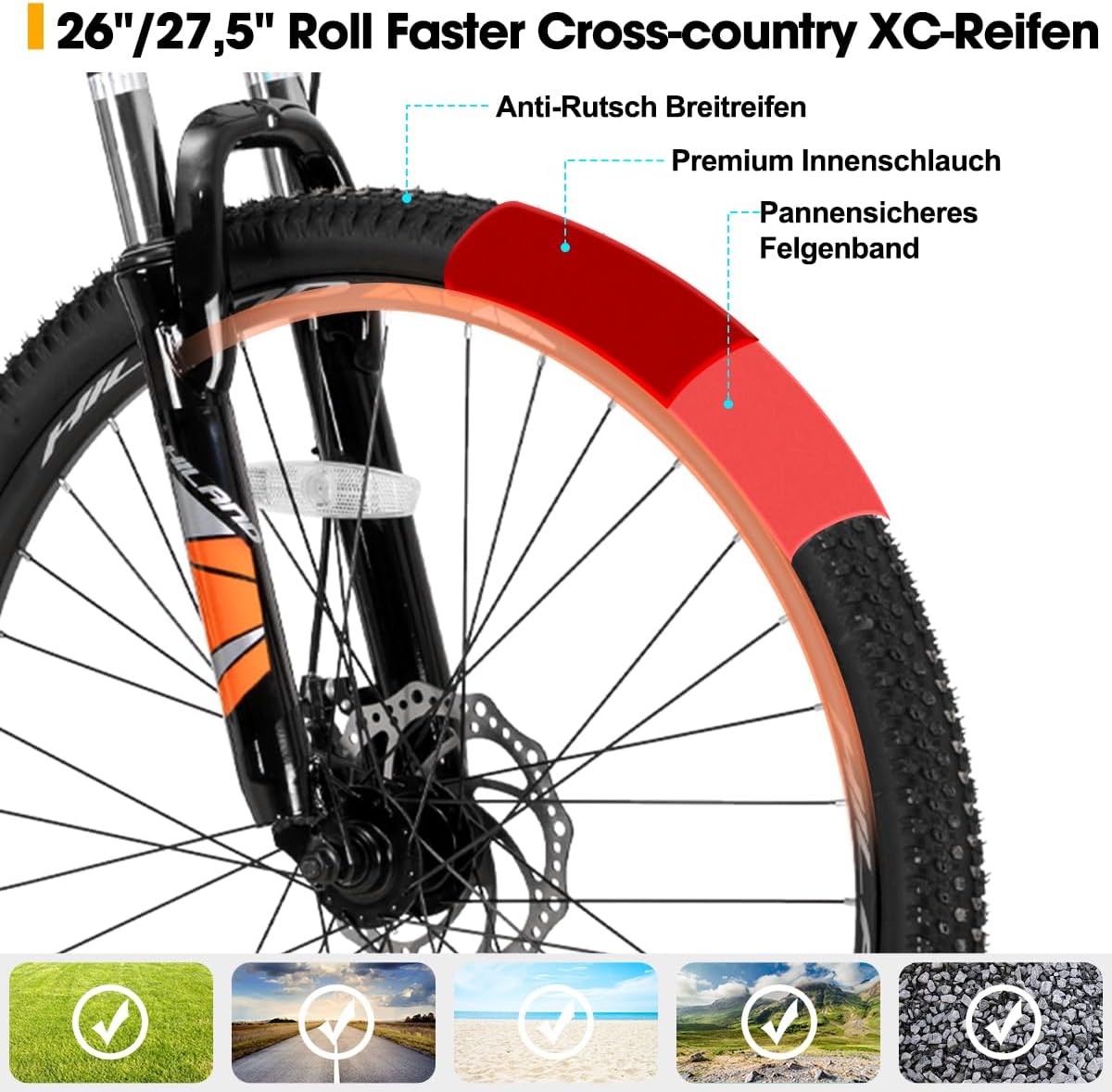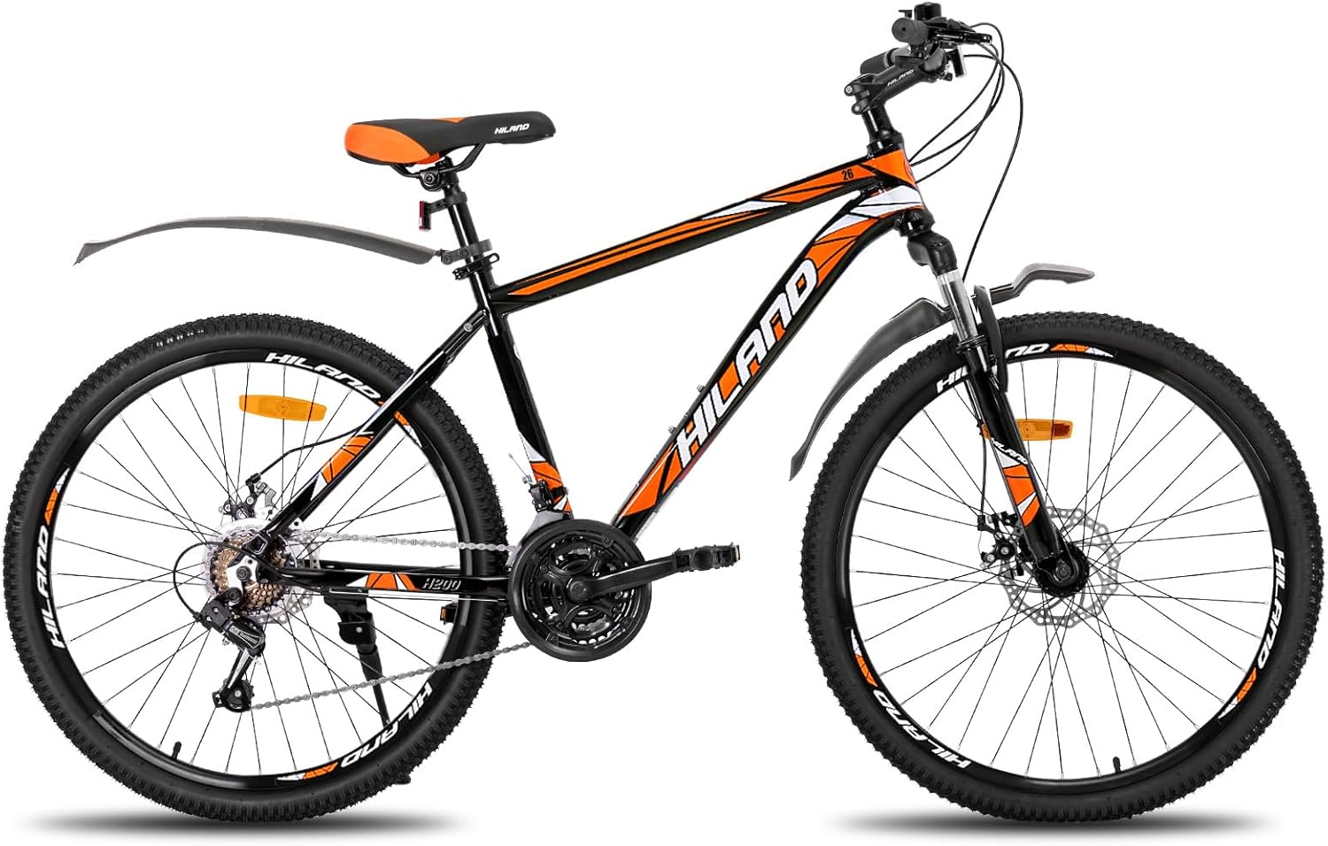 Mit dem Hiland 26 27.5 Inch Mountain Bike, 21 Speed Aluminium Frame Mountain Bike with Disc Brake Spoke Wheels, Youth MTB Bicycle Men Women One Piece Bicycle Wheel bekommst du Qualität, Komfort und Stil – perfekt für deine nächste Tour.