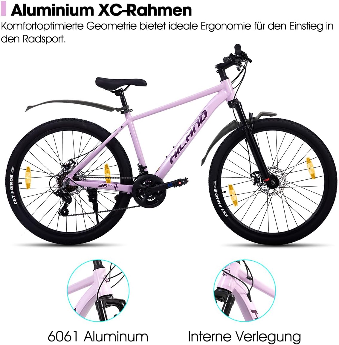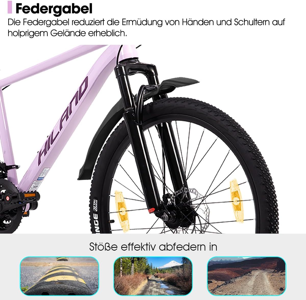Mit dem Hiland 26 27.5 Inch Mountain Bike, Men and Women, 21 Speed MTB with Aluminium Frame, Double Disc Brakes, Mountain Bike for Women, Men, Adults, Black bekommst du Qualität, Komfort und Stil – perfekt für deine nächste Tour.