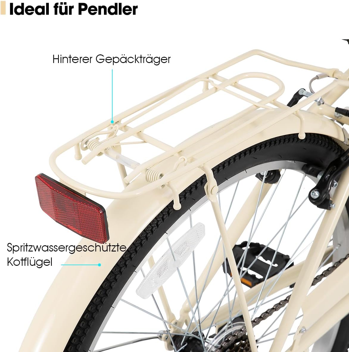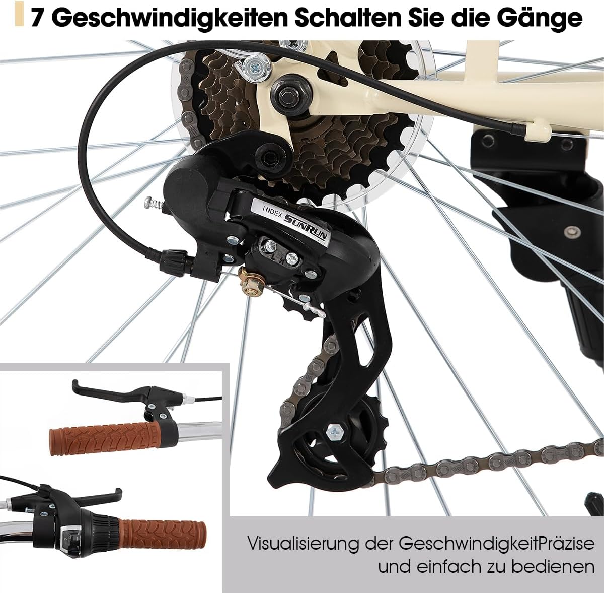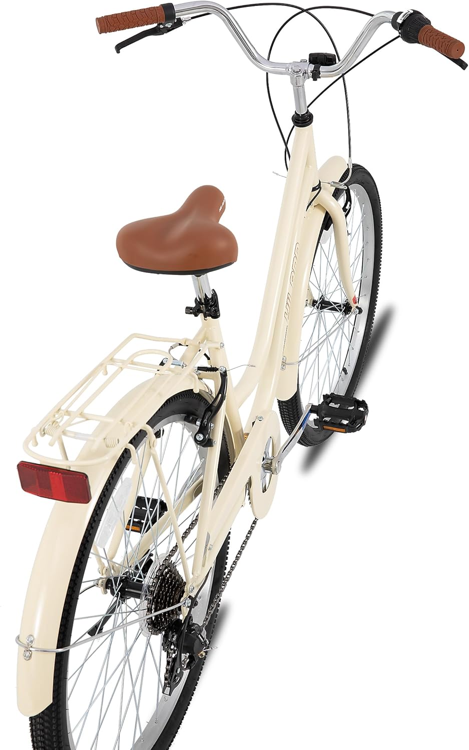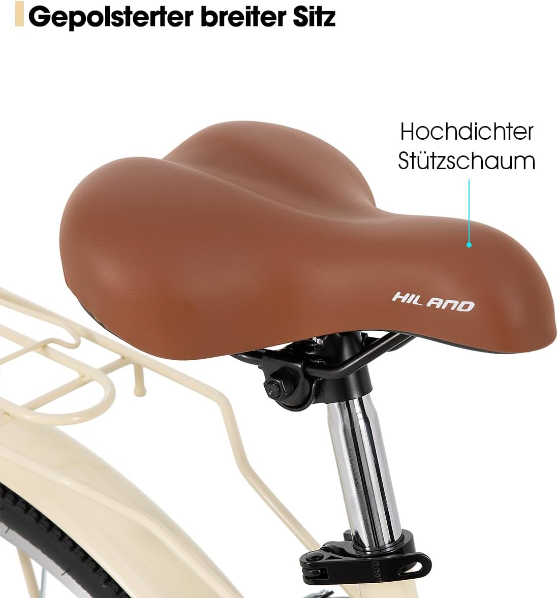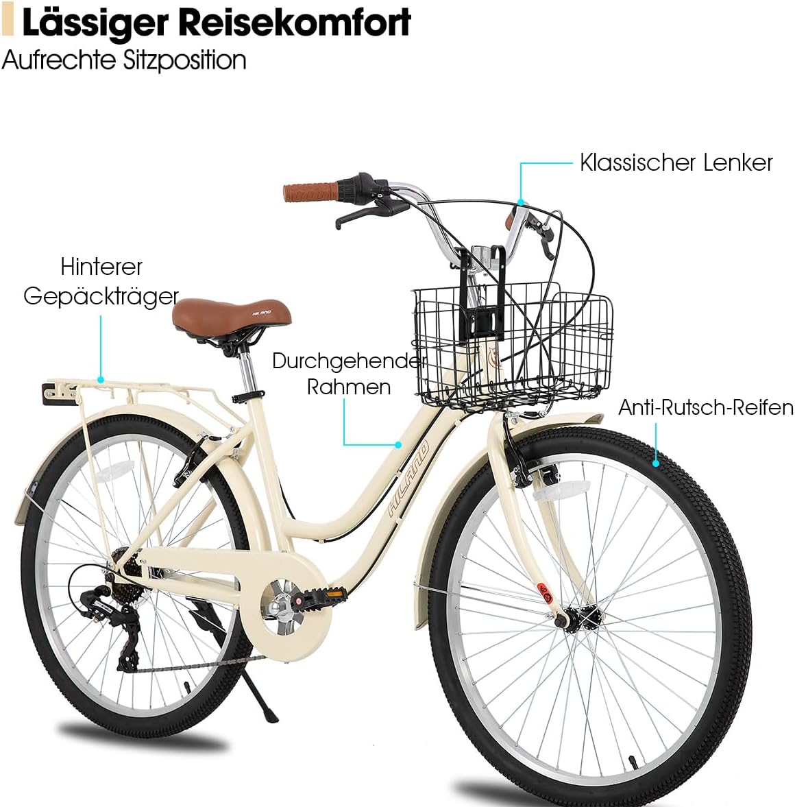 Mit dem Hiland 26 Inch Beach Cruiser Bike for Men and Women, Step-Through Frame, City Bikes for Adults with Pannier Rack and Basket, Men and Women, 7-Speed Commuter City Bicycle bekommst du Qualität, Komfort und Stil – perfekt für deine nächste Tour.