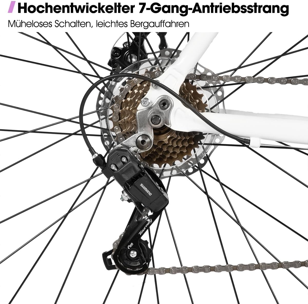 Mit dem Hiland 28 Inch Aluminium Road Bike, 7-Speed Gear Commuter Bike with Disc Brakes, 700C Comfortable City for Men Women bekommst du Qualität, Komfort und Stil – perfekt für deine nächste Tour.