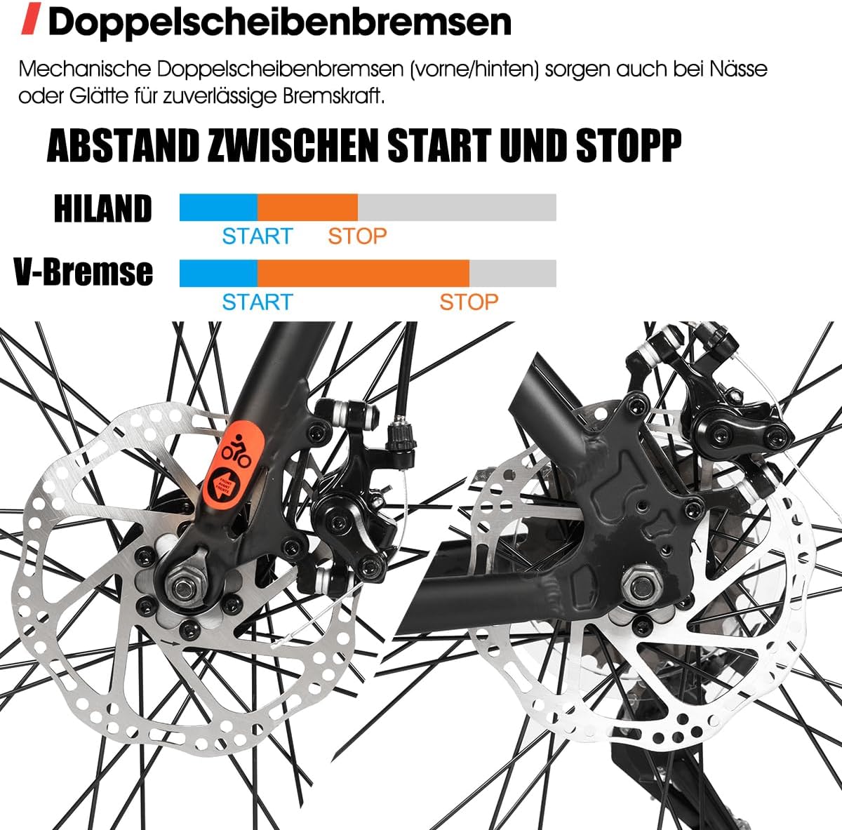 Das Hiland 700C Road Bike Men and Women, Aluminium Frame, 7 Speed Road Bike with Double Disc Brakes, Frame Height 530 mm/570 mm, 28 Inch Road Bike for Commuting, Black/Red/Silver ist ideal für Sportbegeisterte, die ein zuverlässiges Fahrrad suchen.