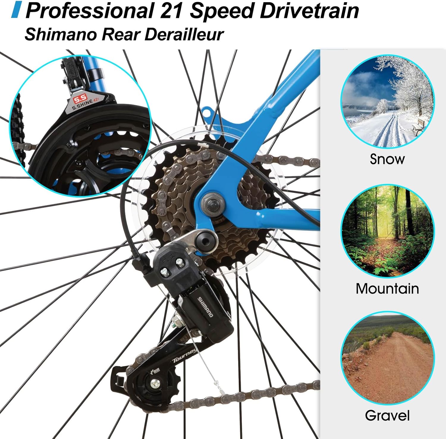 Mit dem Hiland BAMCBASE 26 27.5 29 Inch Mountain Bike, 21 Speed Men’s Women’s Mountain Bike, MTB for Men Women, Hardtail Bicycle with V-Brake, Black/Blue/Grey bekommst du Qualität, Komfort und Stil – perfekt für deine nächste Tour.