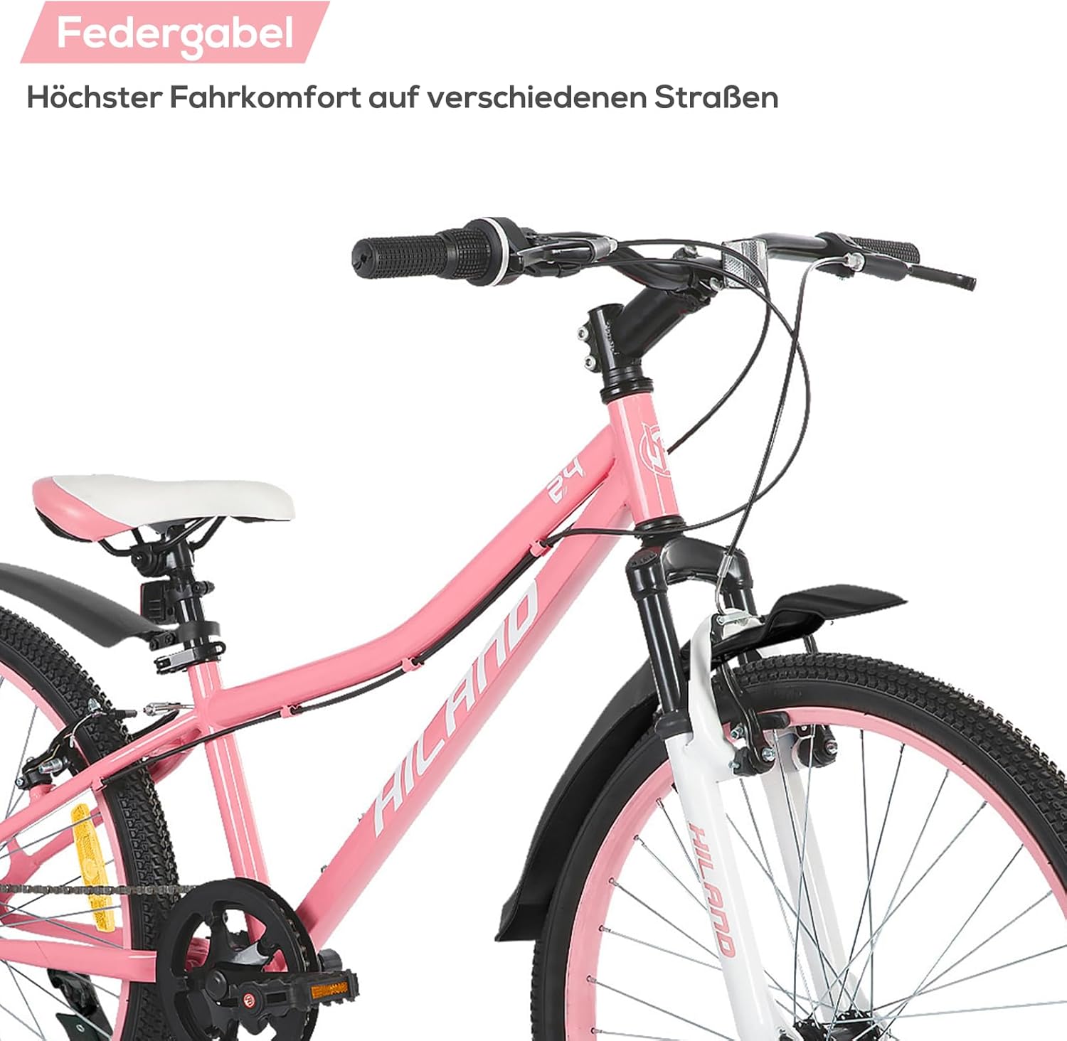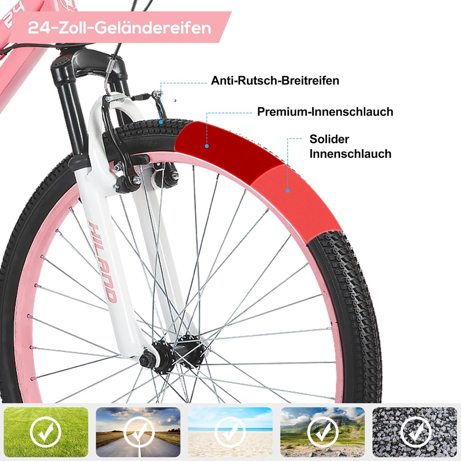 Top-Angebot: Hiland Climber 24 Zoll Kinderfahrrad, Kinder Mountainbike Jugend Mädchen mit Federgabel 7 Gang, Kinder MTB mit V-Bremse, Schwarz/Blau/Mintgrün/Rosa