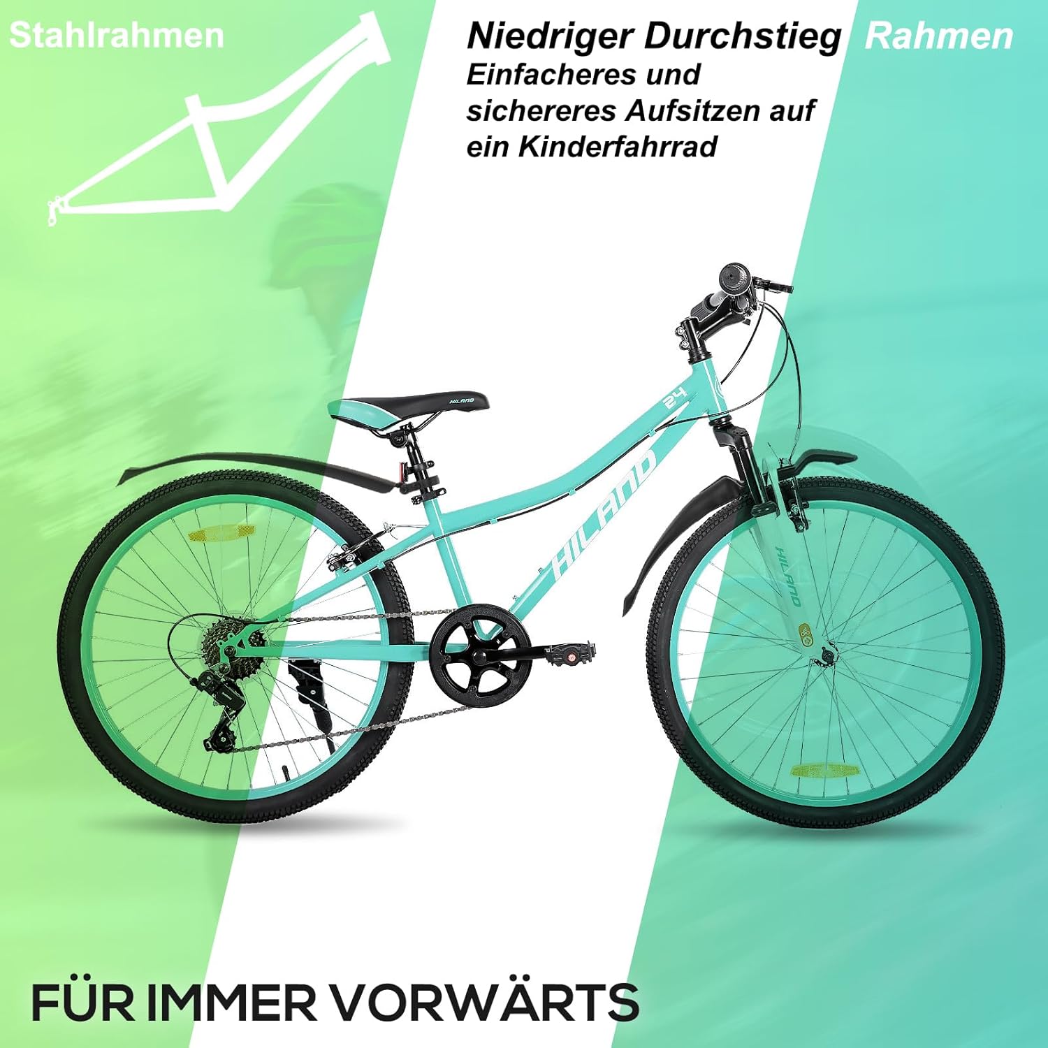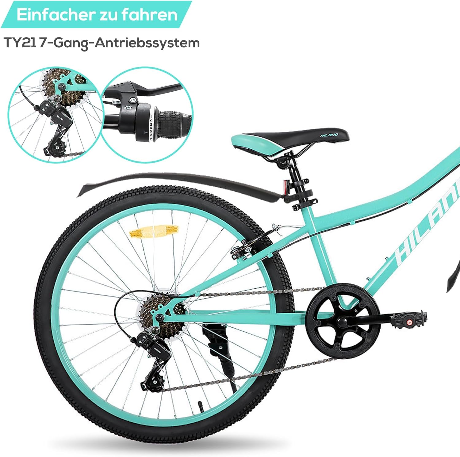 Top-Angebot: Hiland Climber 24 Zoll Kinderfahrrad, Kinder Mountainbike Jugend Mädchen mit Federgabel 7 Gang, Kinder MTB mit V-Bremse, Schwarz/Blau/Mintgrün/Rosa