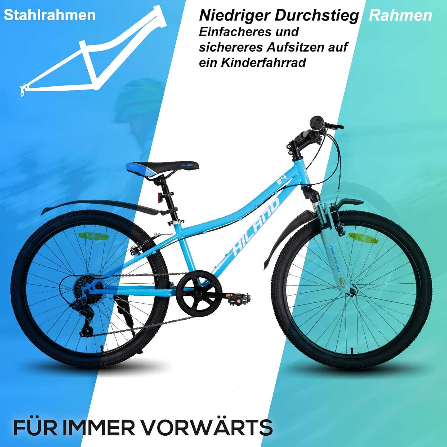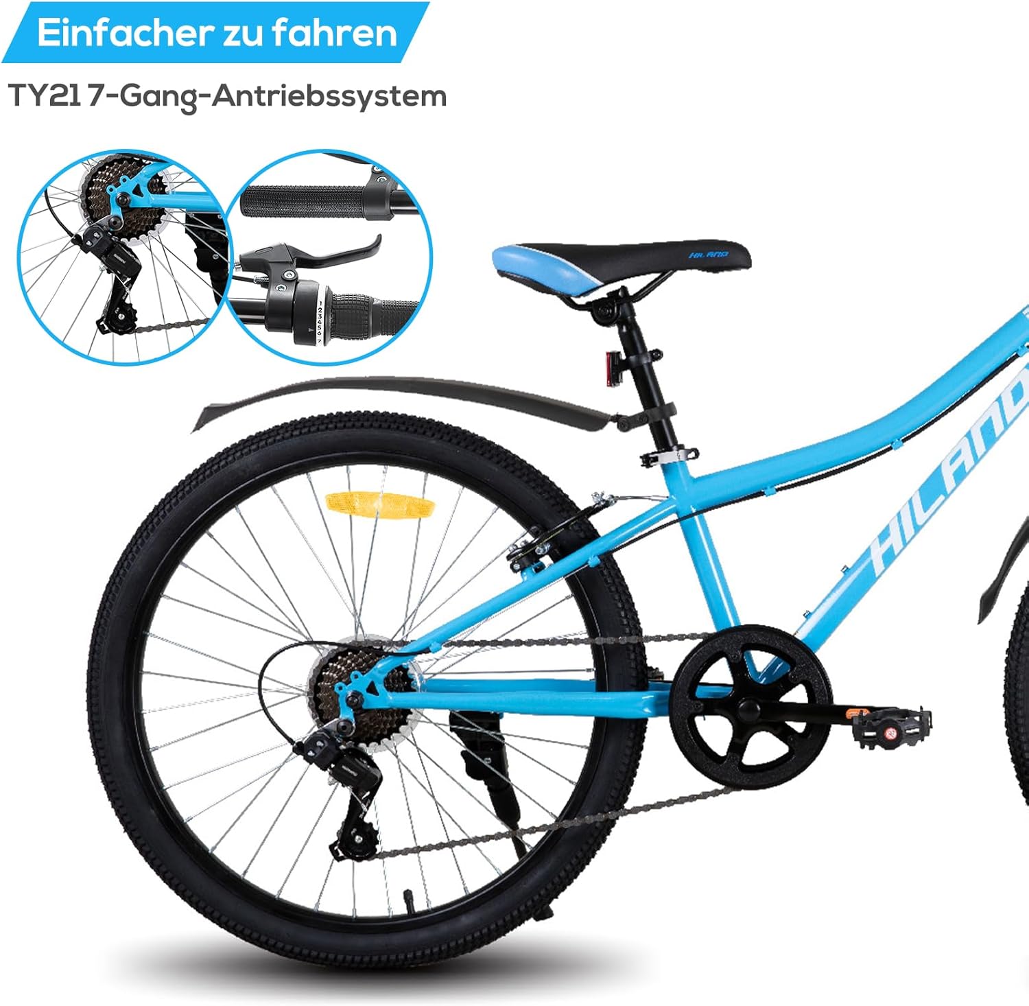 Top-Angebot: Hiland Climber 24 Zoll Kinderfahrrad, Kinder Mountainbike Jugend Mädchen mit Federgabel 7 Gang, Kinder MTB mit V-Bremse, Schwarz/Blau/Mintgrün/Rosa