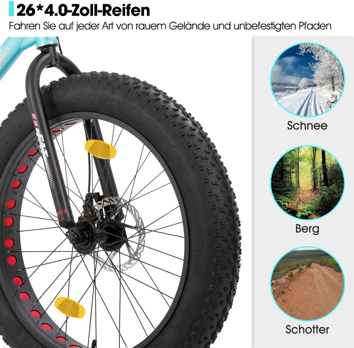 Mit dem Hiland Fat Tire 24/26 Zoll Mountainbike mit Doppelscheibenbremse, 7-Gang Mountainbike für Jungen und Mädchen, Strand und Schnee Fahrrad bekommst du Qualität, Komfort und Stil – perfekt für deine nächste Tour.