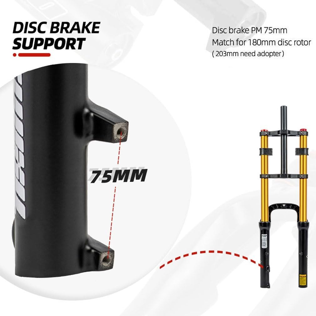 Top-Angebot: HIMALO 20 Inch Bicycle Suspension Fork 4.0 Tyre Fat Fork Straight Double Shoulder Air Fork Suspension Travel 110 mm QR 135 mm Disc Brake Front Fork Tension Adjustable (Color : Black)