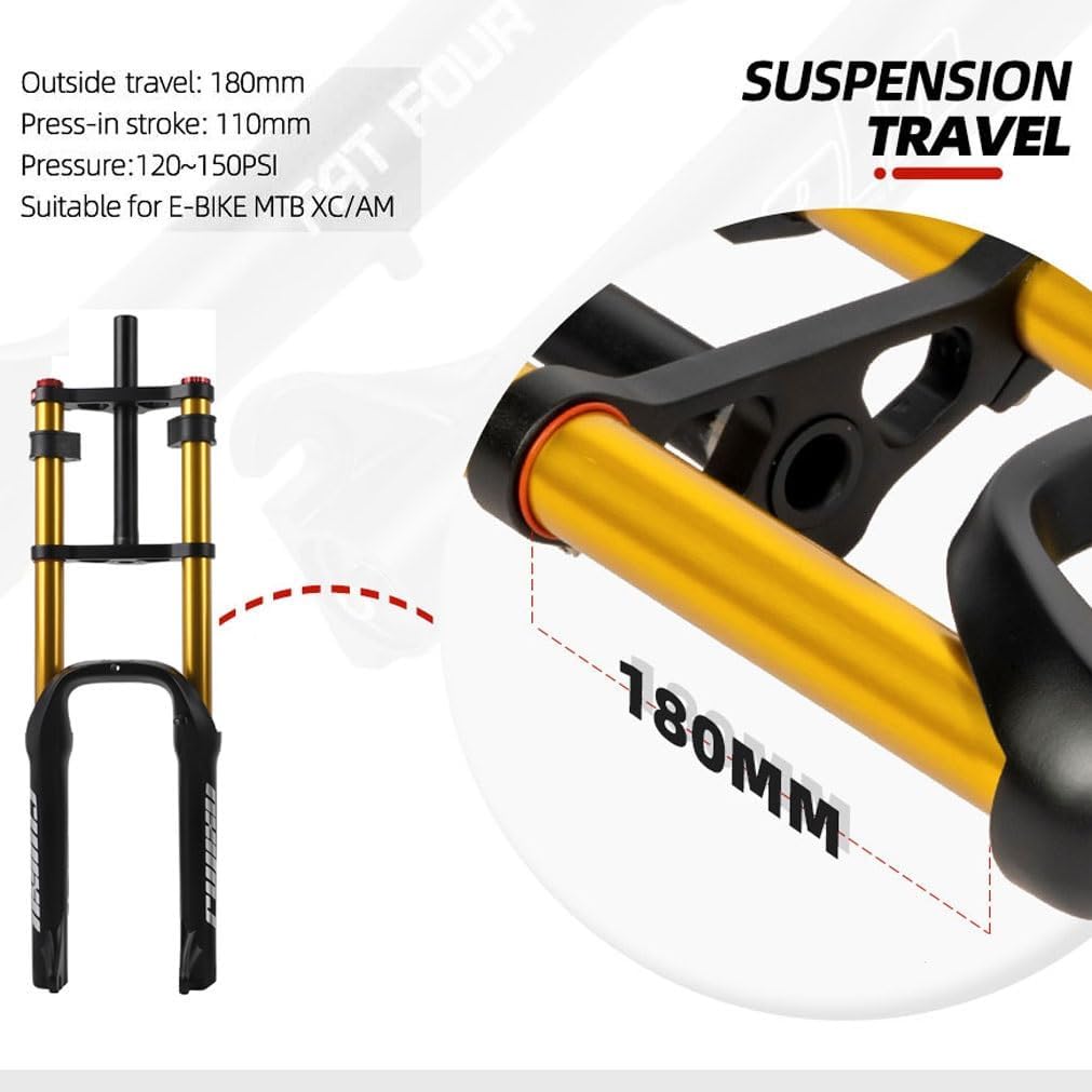 Jetzt entdecken: HIMALO 20 Inch Bicycle Suspension Fork 4.0 Tyre Fat Fork Straight Double Shoulder Air Fork Suspension Travel 110 mm QR 135 mm Disc Brake Front Fork Tension Adjustable (Color : Black)