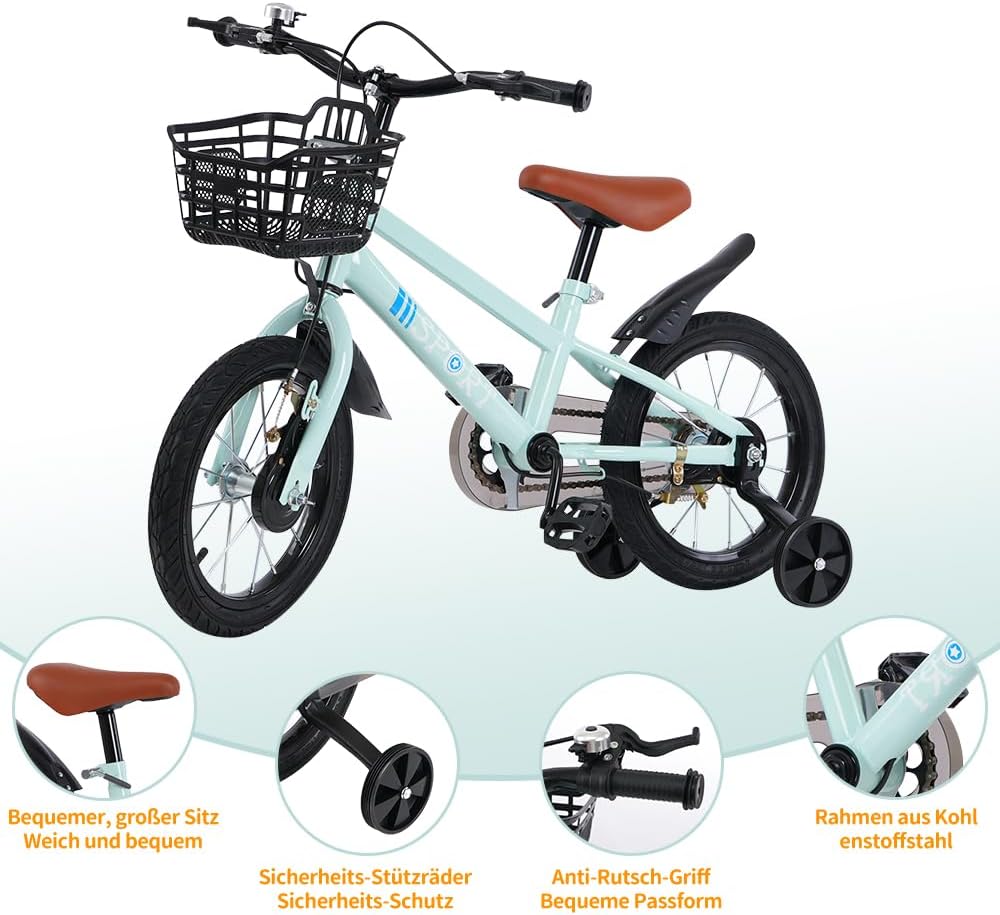 Top-Angebot: homewell 12/14/16 Inch Children’s Bicycle for Boys & Girls (2-8 Years), Children’s Bicycle with Stabilisers and Non-Slip Tyres