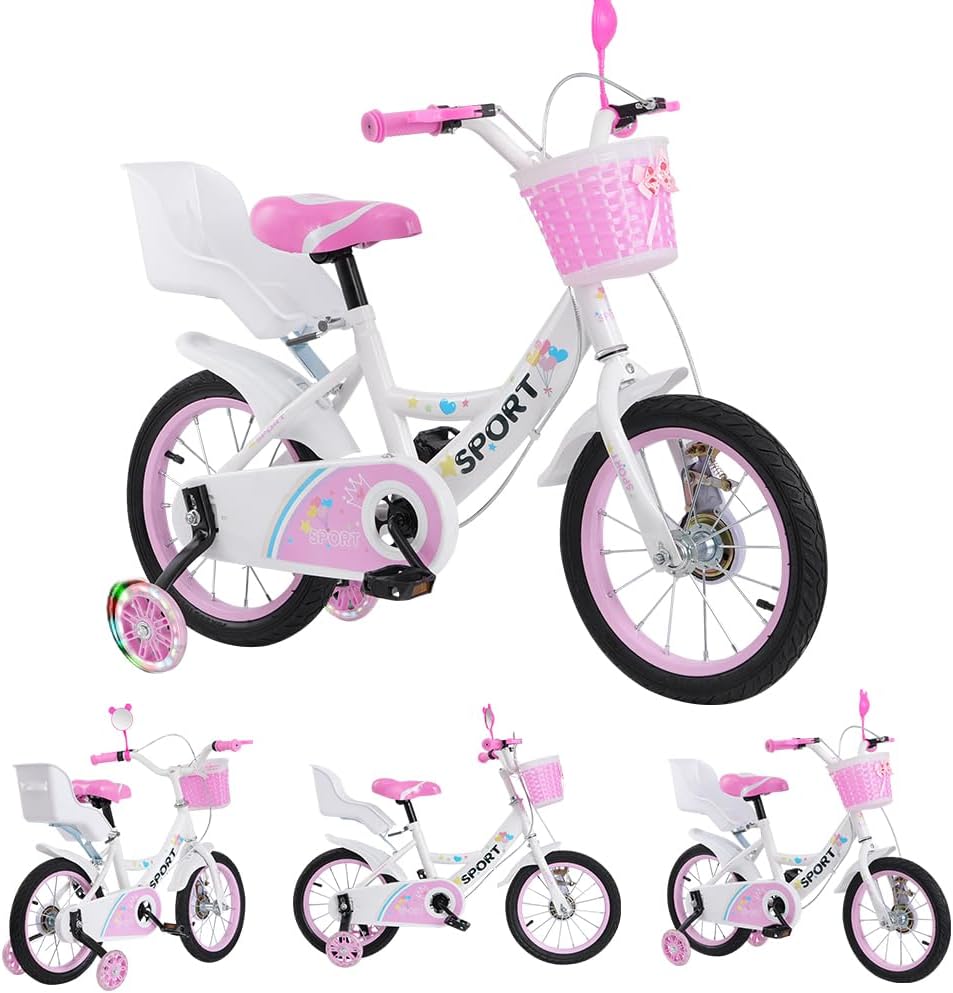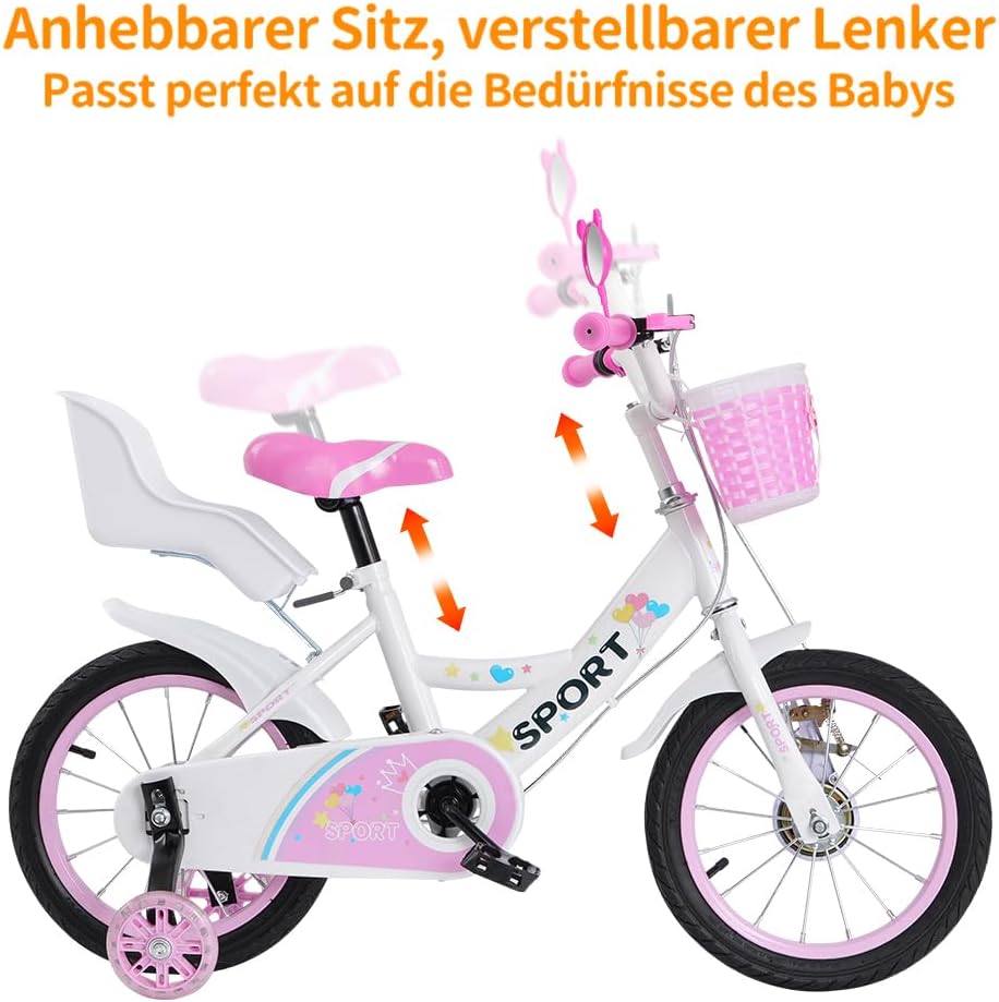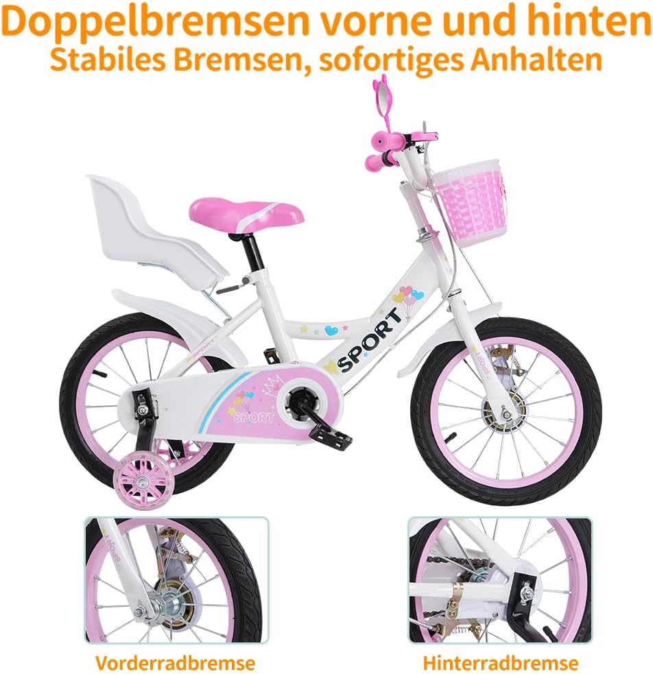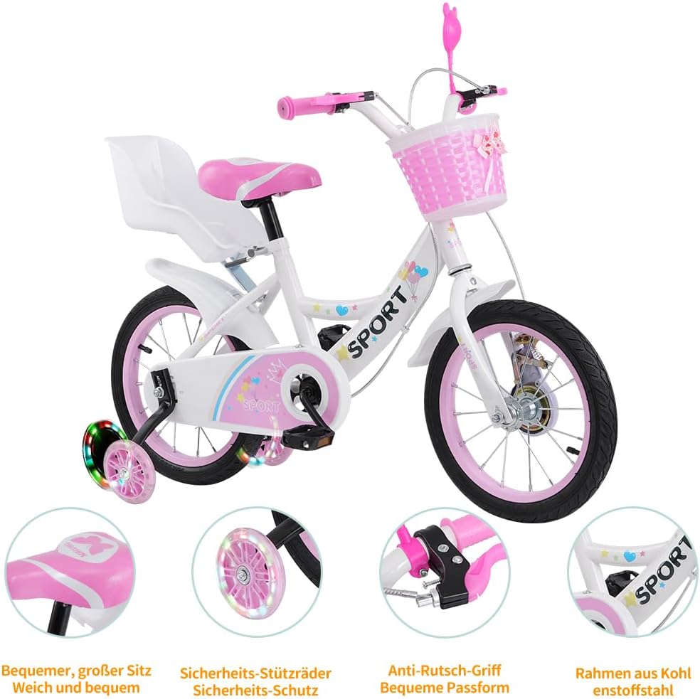 Top-Angebot: homewell 12/14/16 Inch Children’s Bicycle for Girls & Boys (2-8 Years) – Pink/White, Children’s Bicycle with Seats for Toys, Safety Brakes, Stabilisers, Easy Assembly