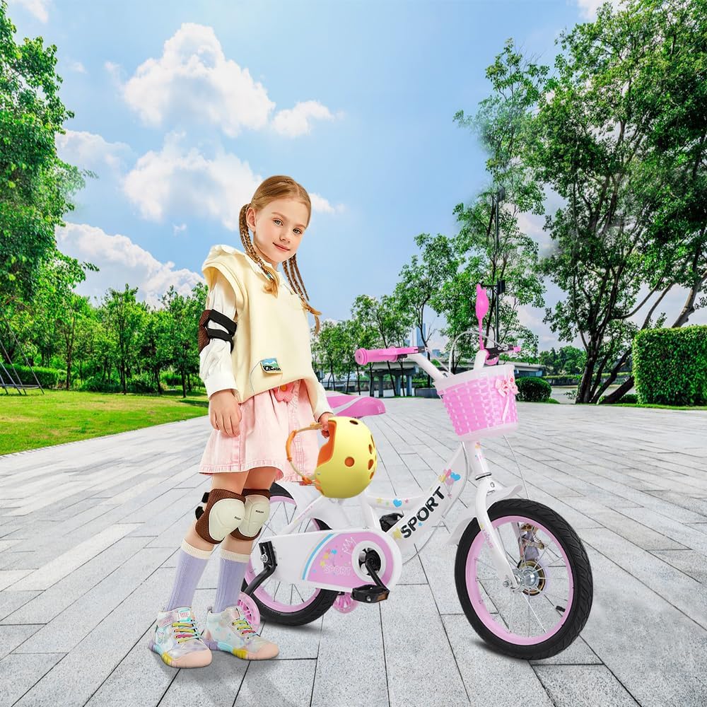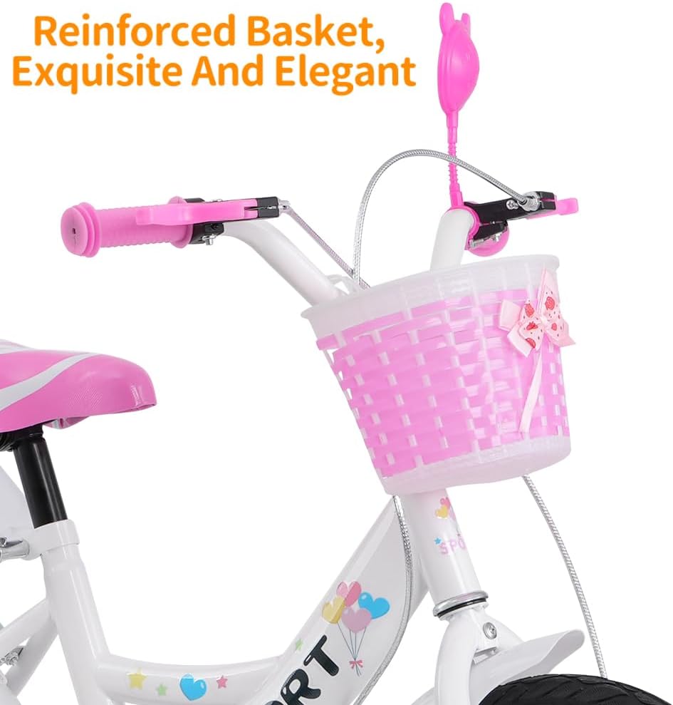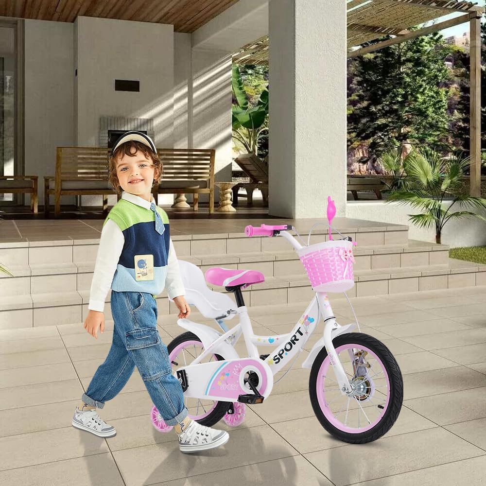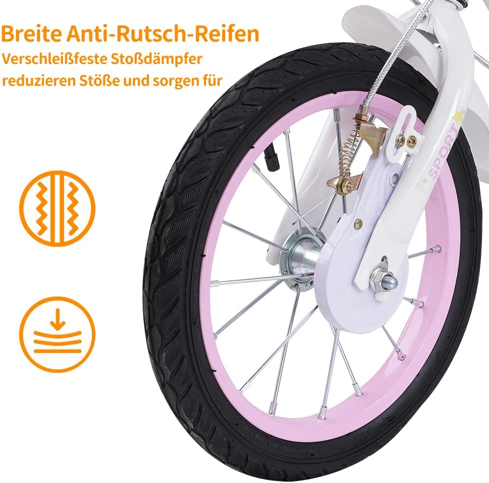 Top-Angebot: homewell 12/14/16 Inch Children’s Bicycle for Girls & Boys (2-8 Years) – Pink/White, Children’s Bicycle with Seats for Toys, Safety Brakes, Stabilisers, Easy Assembly