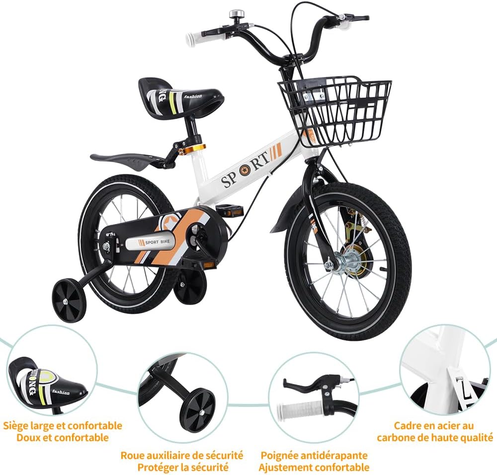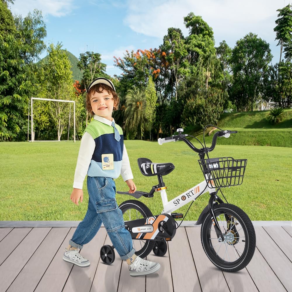 Jetzt entdecken: homewell 16 Inch Baby Bike Kids Bicycle 2-8 Years Old Children Bike with Removable Stabilisers and Basket for Meadows, Mountain Roads (White)