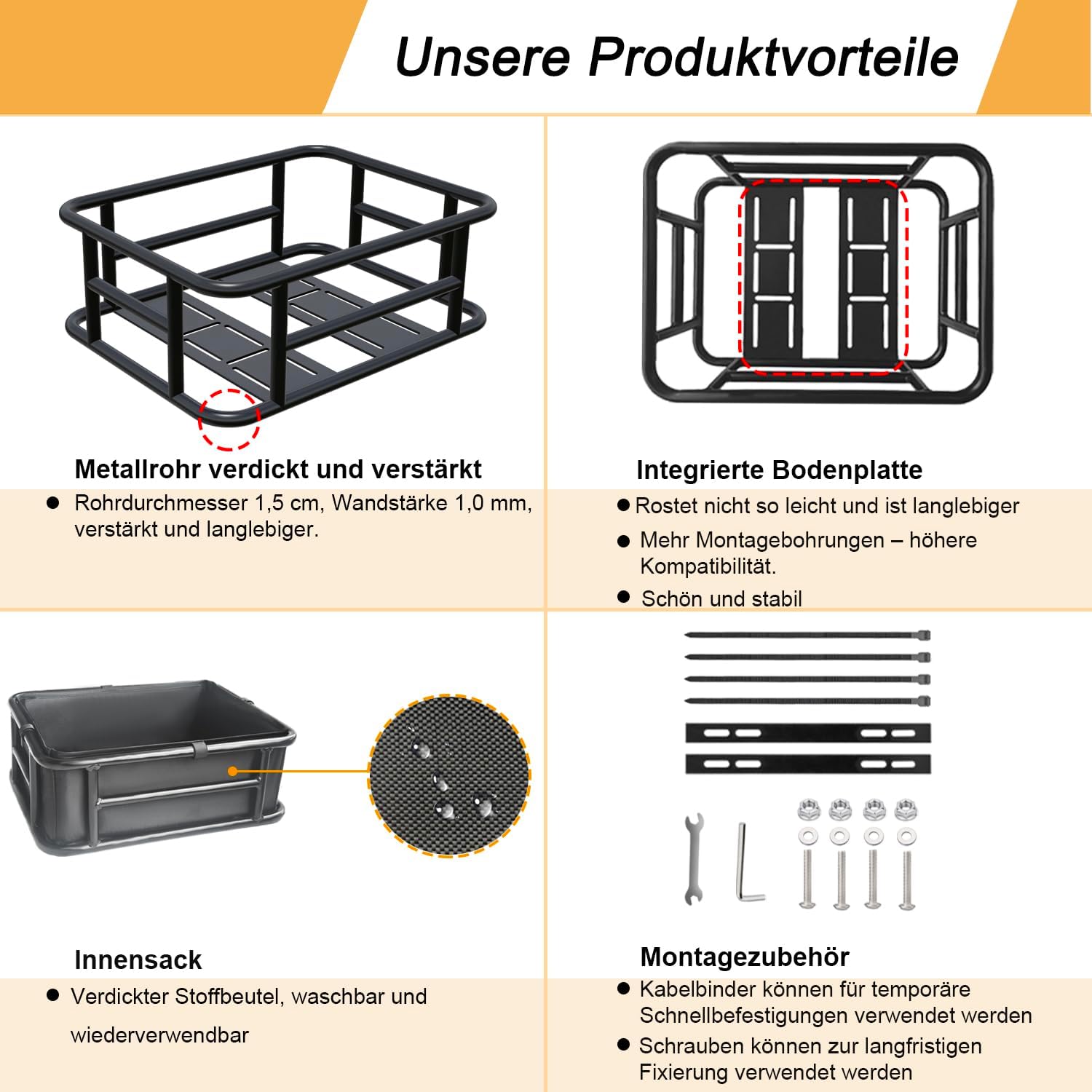 Mit dem HopesEager fahrradkorb hinten,Pro Großer Fahrradkorb aus Metall hinten, robuster fahrradkorb gepäckträger hinten für die meisten Fahrräder und E-Bikes für Fahrradtour,Einkaufen, Hund bekommst du Qualität, Komfort und Stil – perfekt für deine nächste Tour.