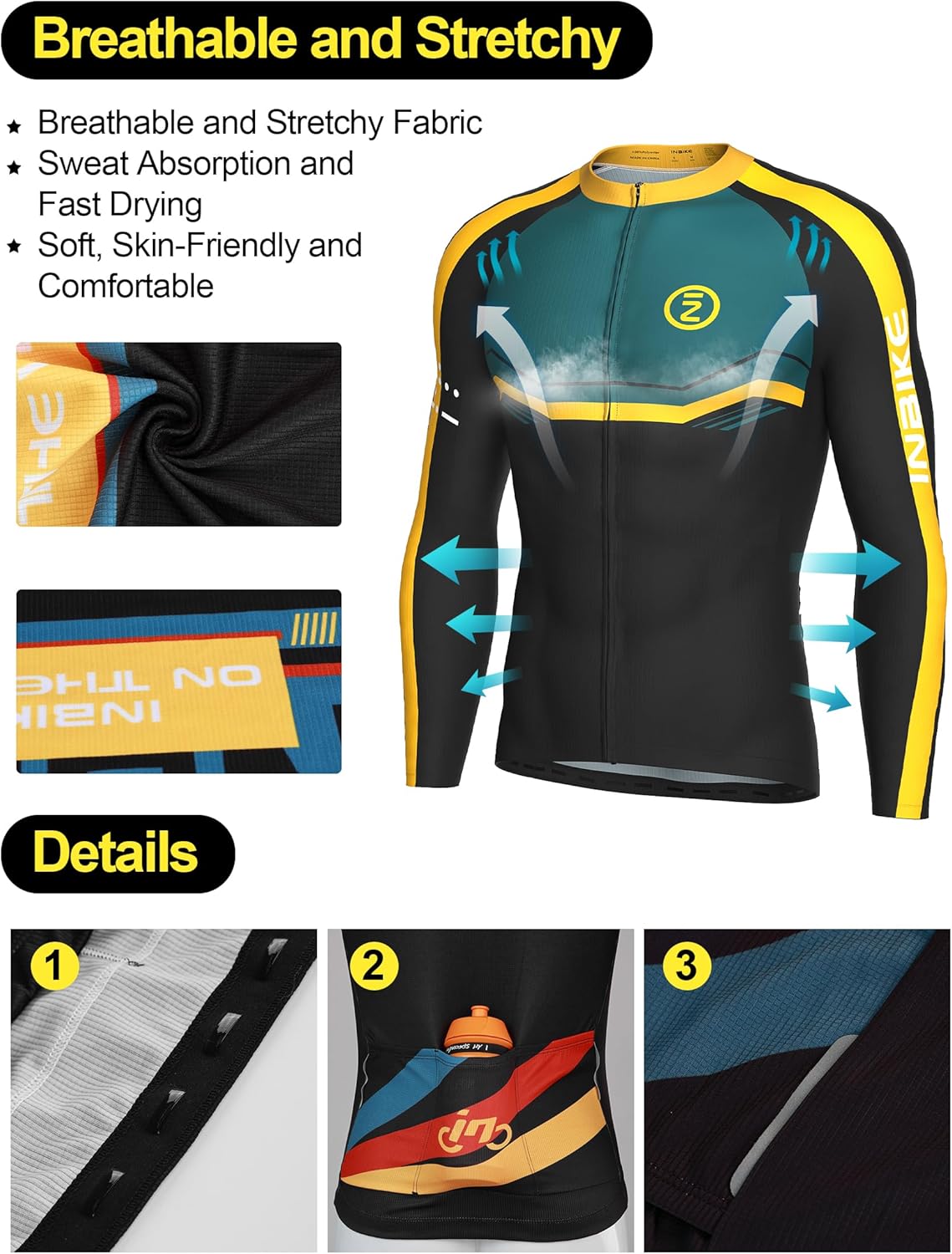 Mit dem INBIKE Men’s Cycling Jersey Set Long Sleeve Black with Yellow Pattern Bib Shorts with Seat Padding Winter Cycling Clothing Suit for Road Bike Mountain Bike Bicycle bekommst du Qualität, Komfort und Stil – perfekt für deine nächste Tour.