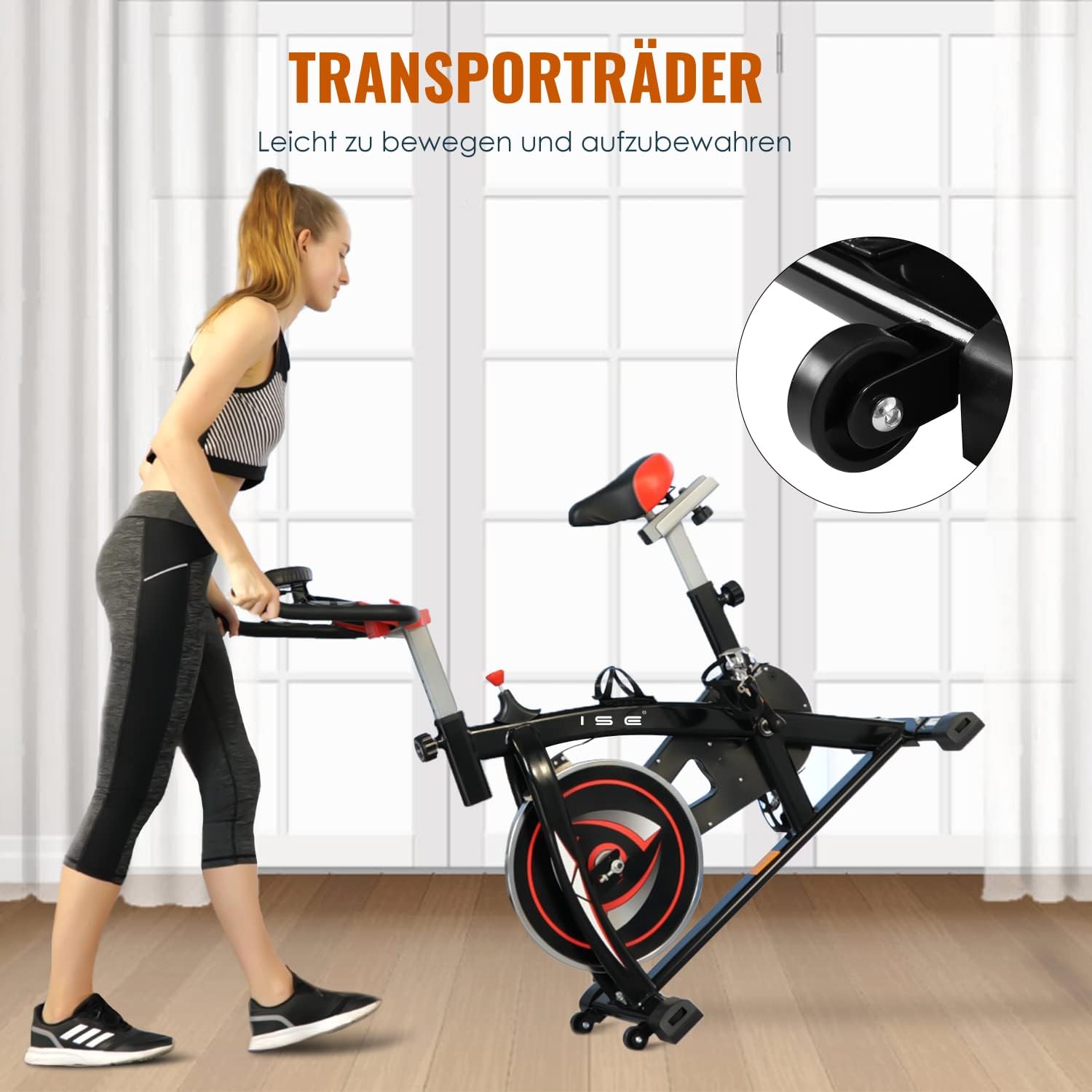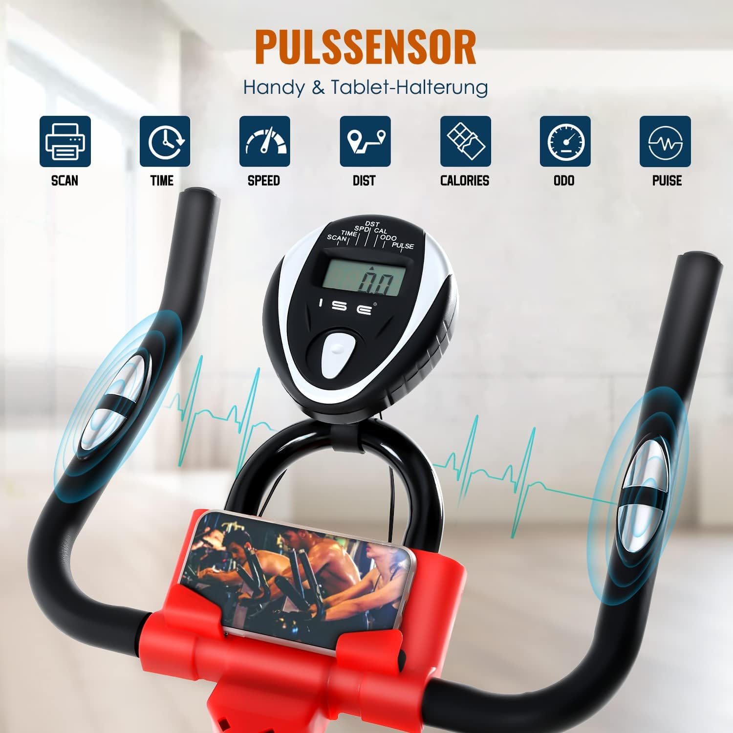 Top-Angebot: ISE SY-7802 Indoor Cycle Ergometer, Exercise Bike with LCD Display, Padded Armrests, Pulse Sensor, 8 kg Flywheel, Fitness Bike with Belt Drive, Load Capacity: 135 kg