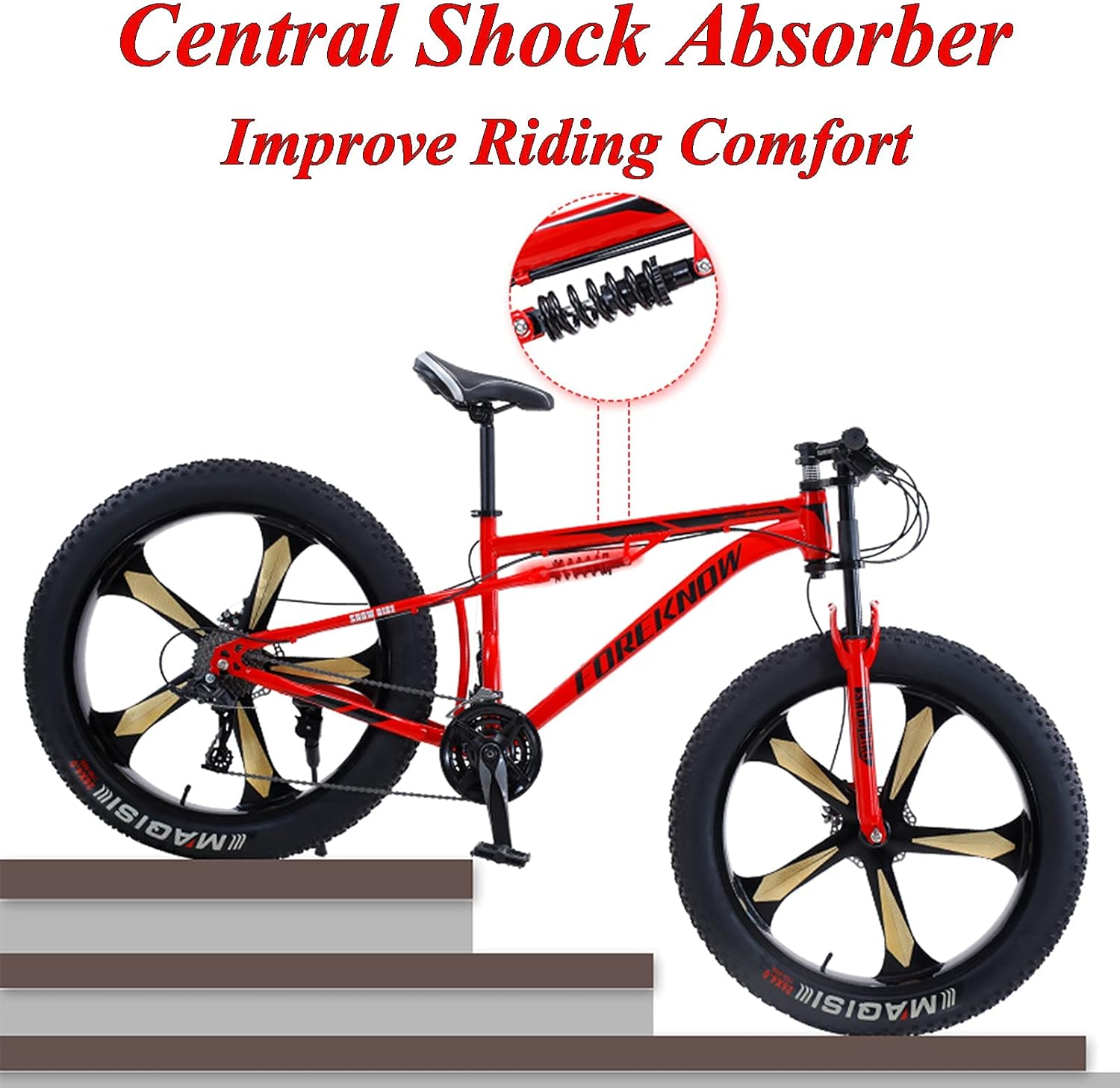 Top-Angebot: JXYQ Mountain Bikes Men’s 26 Inch Adult Fat Tyre Mountain Bike with Full Suspension, High Carbon Steel, Large Frame, Double Disc Brake, Giant Bicycle