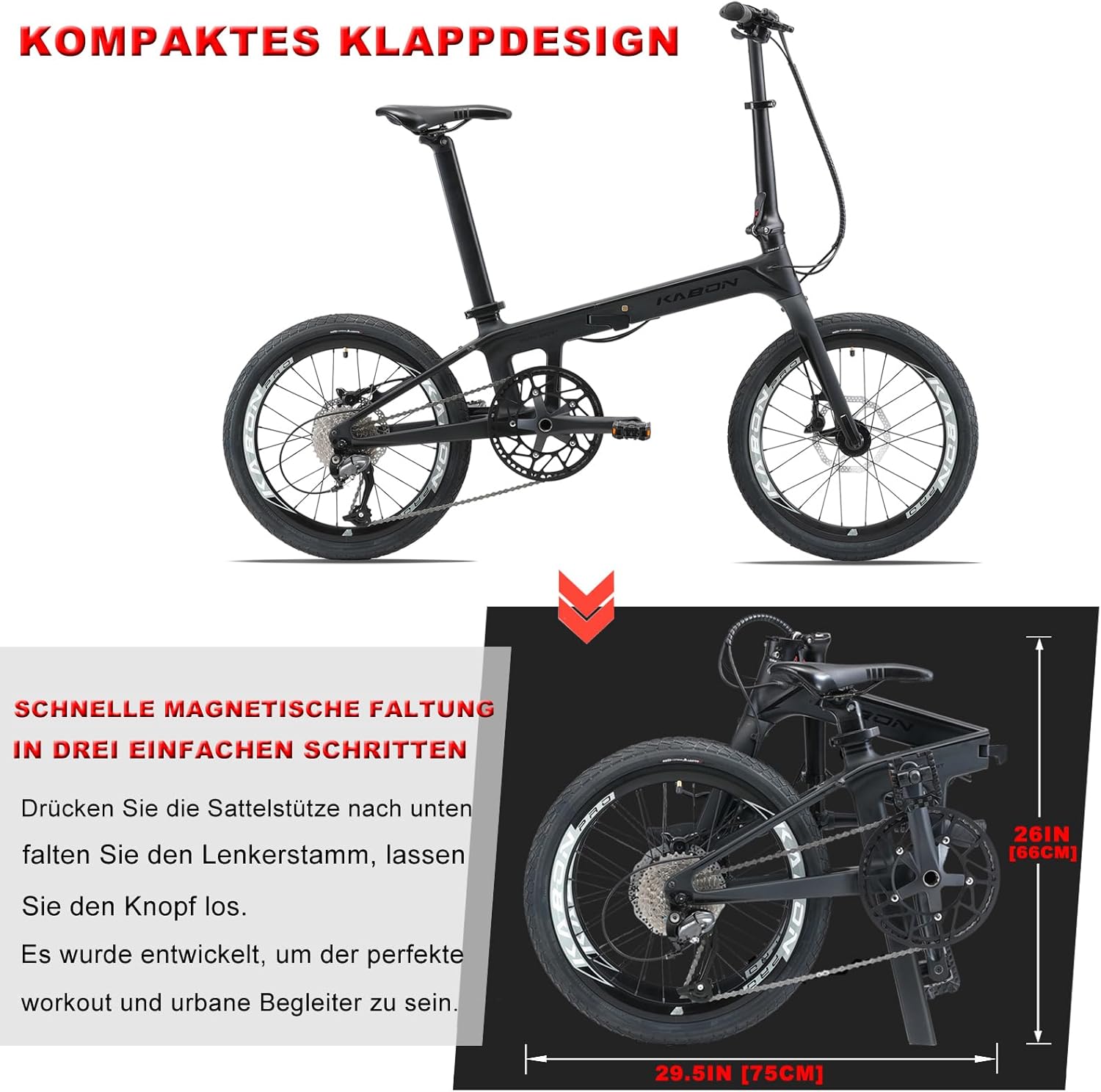Jetzt entdecken: KABON Full Carbon Folding Bike, Lightweight 20 Inch Carbon Fibre Frame Folding Bike with 11 Speed Hydraulic Disc Brake Bicycle with Carbon Wheelset for Unisex Adults
