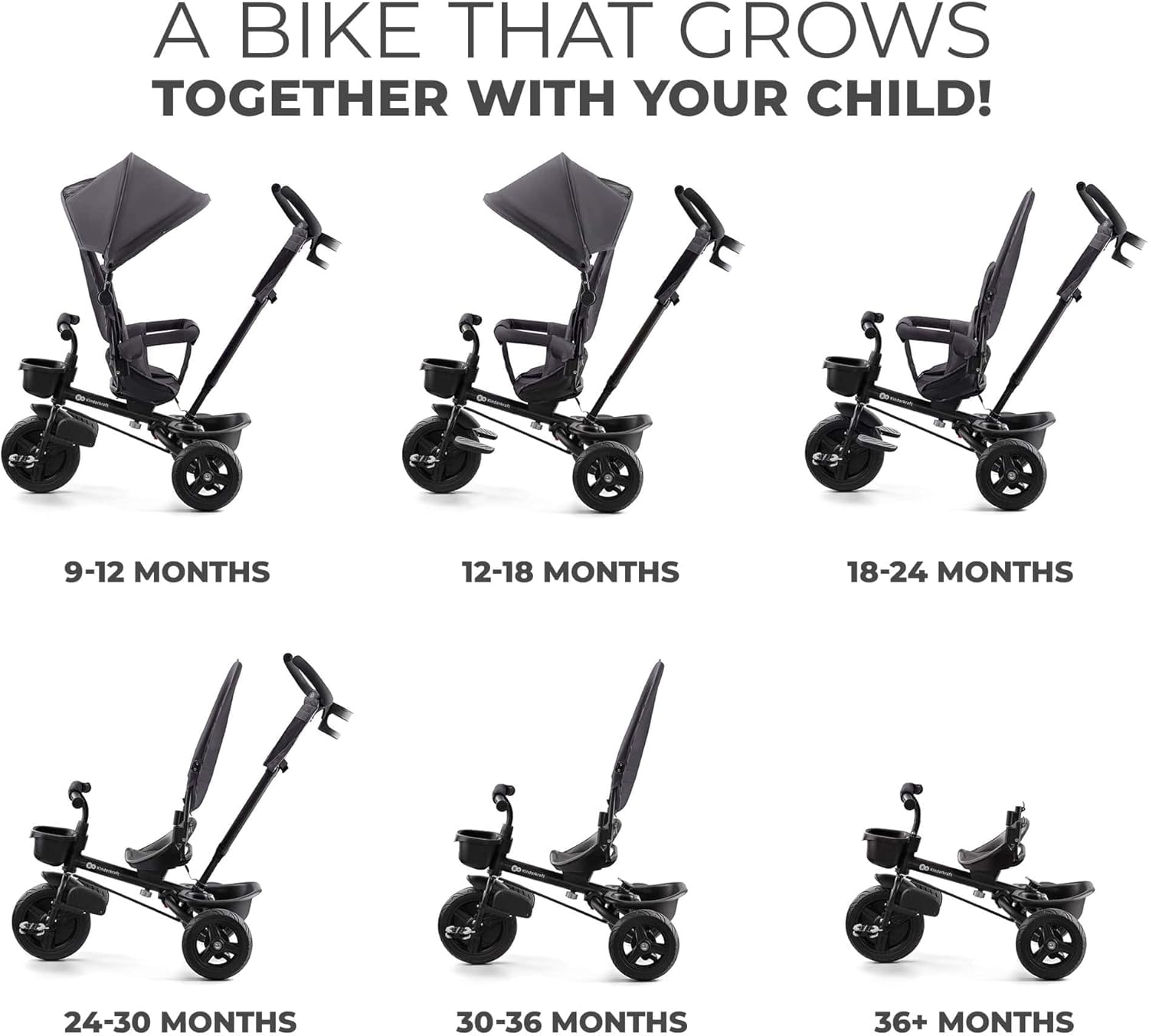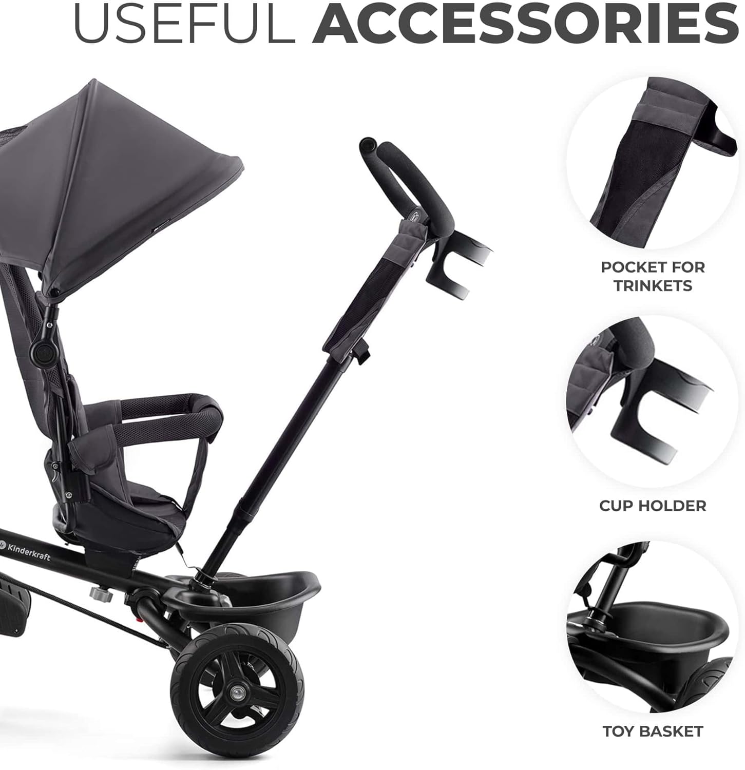 Top-Angebot: Kinderkraft Aveo Tricycle from 9 Months to 25 kg, Children’s Tricycle with Push Bar, Compact Folding, Rotating Seat, Fold-Out Hood with Sun Protection, Drink Holder Basket in Set, Dark Grey