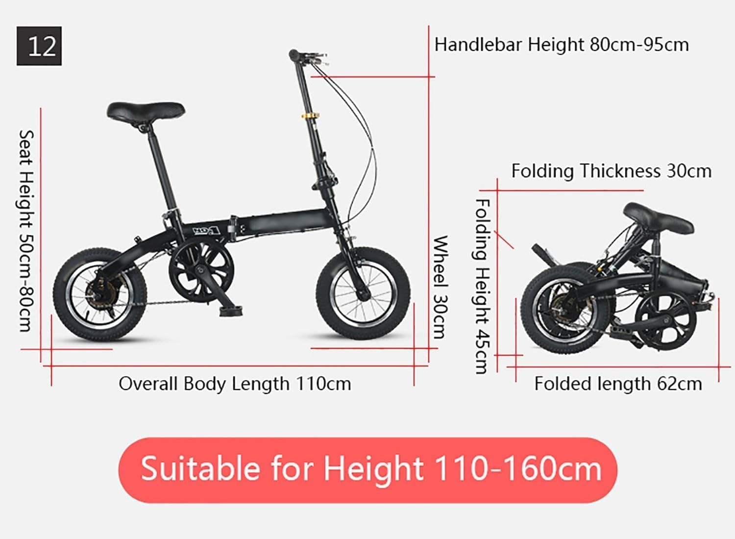 Top-Angebot: LETIANZG 12 inch folding bike for adults and teenagers, folding bike with adjustable height, foldable city bike can be easily folded in 10 seconds, foldable camping bike (A, 12 inches)