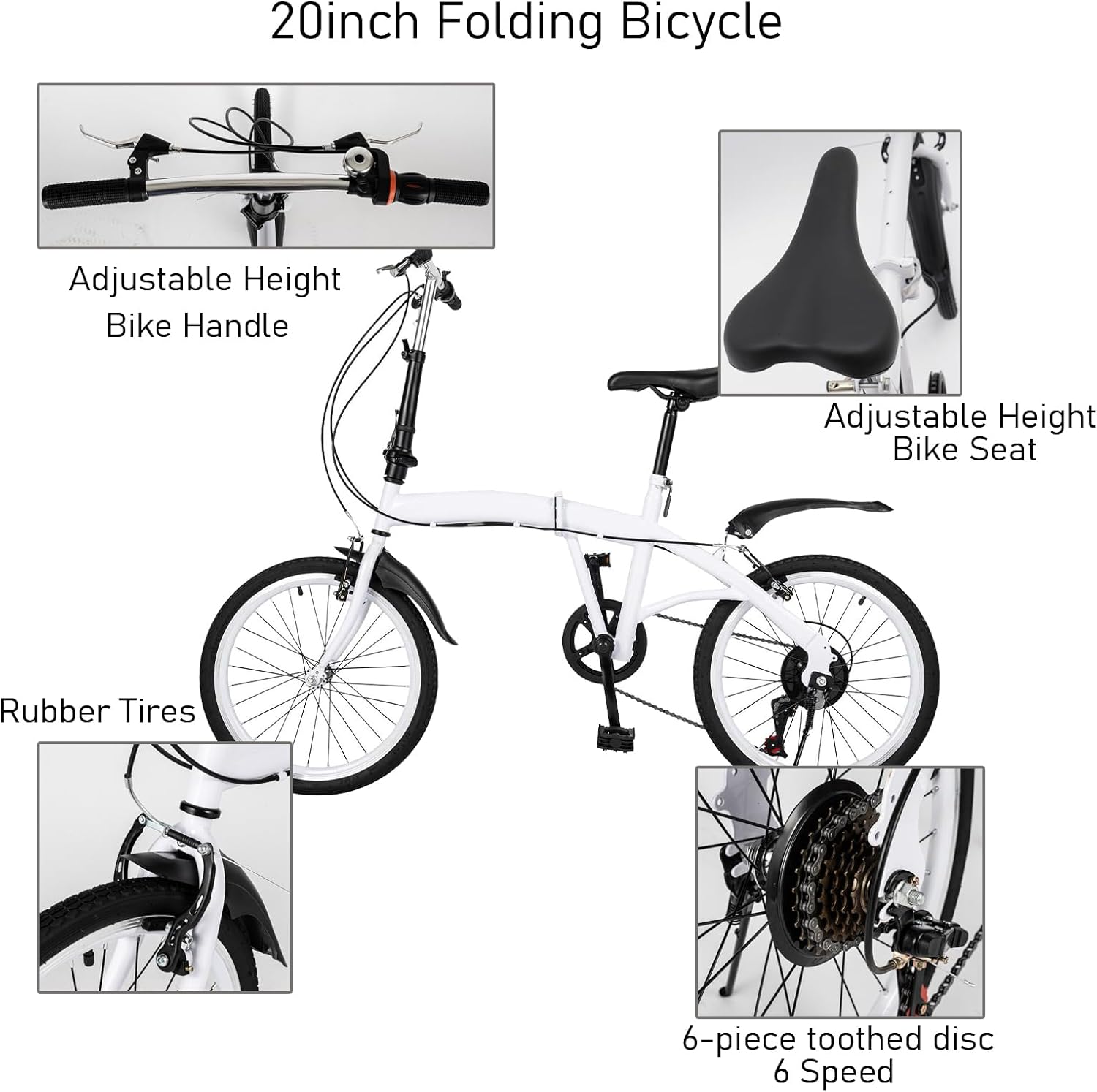 Top-Angebot: Levkitch 20 Inch Folding Bike, 6 Speed Folding Bike for 1.4-1.9 m Adults, City Folding Bike with Disc Brake, Disc Brake, Carbon Steel Bicycle
