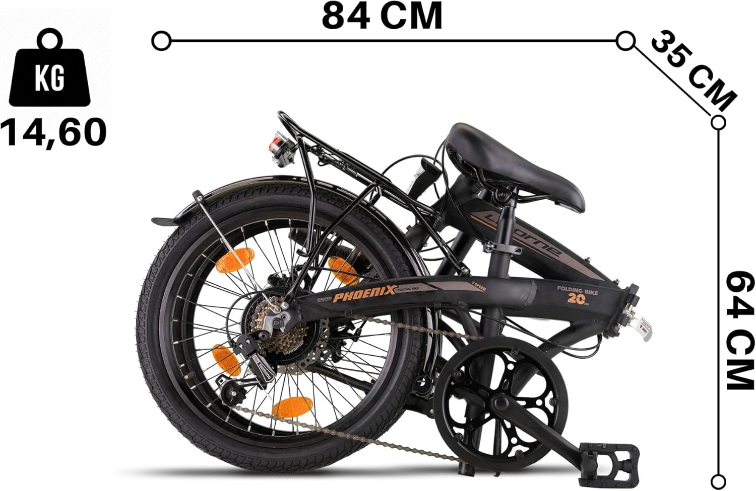 Top-Angebot: Licorne Bike Phoenix 2D, 20 Inch Aluminium Folding Bike Disc Brake Disc Brake V-Brake Folding Bicycle Men Women 7 Speed Derailleur Gear Folding City Bike StVZO