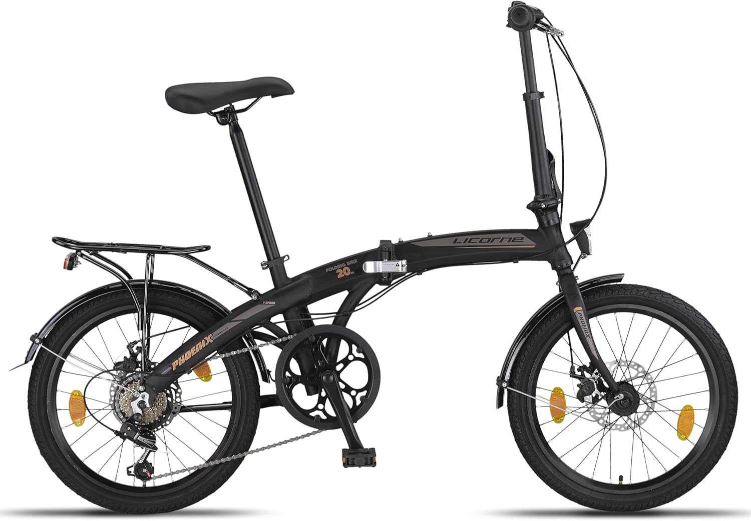 Das Licorne Bike Phoenix 2D, 20 Inch Aluminium Folding Bike Disc Brake Disc Brake V-Brake Folding Bicycle Men Women 7 Speed Derailleur Gear Folding City Bike StVZO ist ideal für Sportbegeisterte, die ein zuverlässiges Fahrrad suchen.