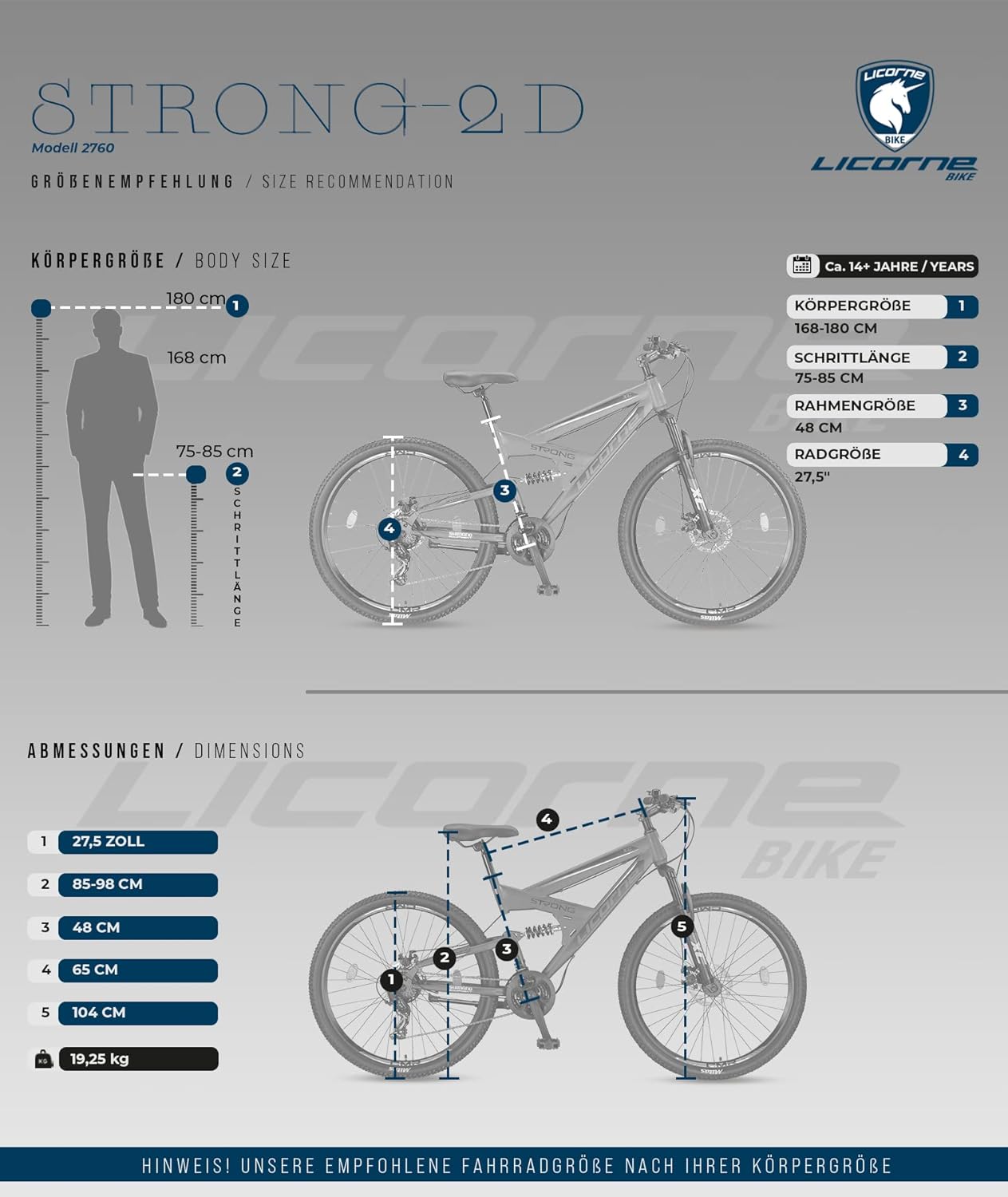 Top-Angebot: Licorne Bike Strong 2D Premium Mountain Bike in 26, 27.5 and 29 Inch Bicycle for Boys Girls Women and Men Disc Brake Front and Rear 21 Speed Gears Full Suspension