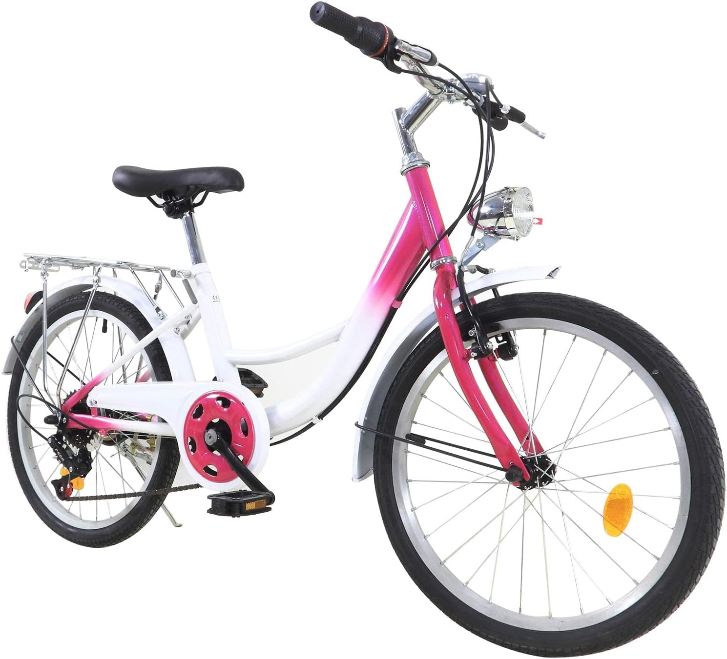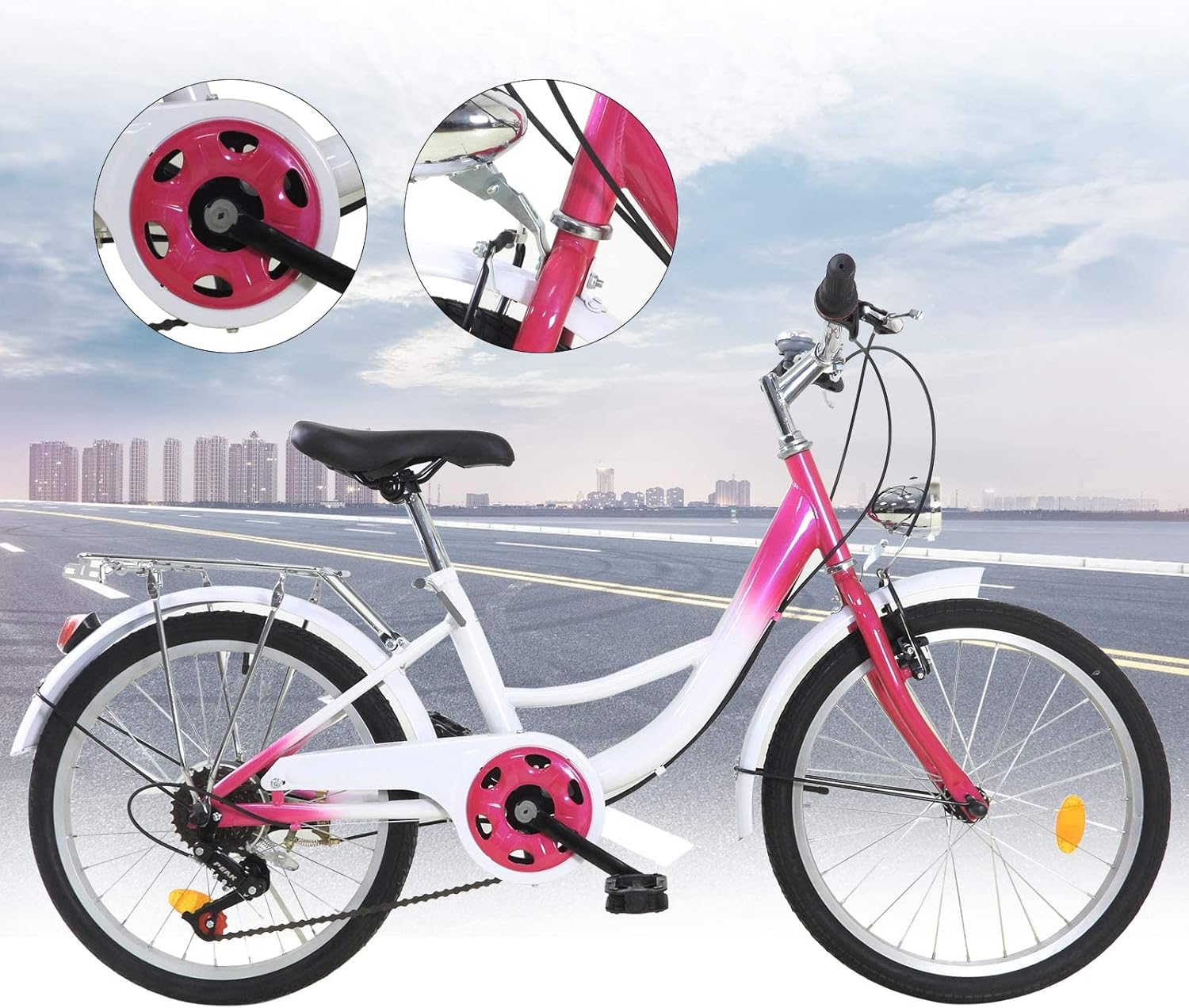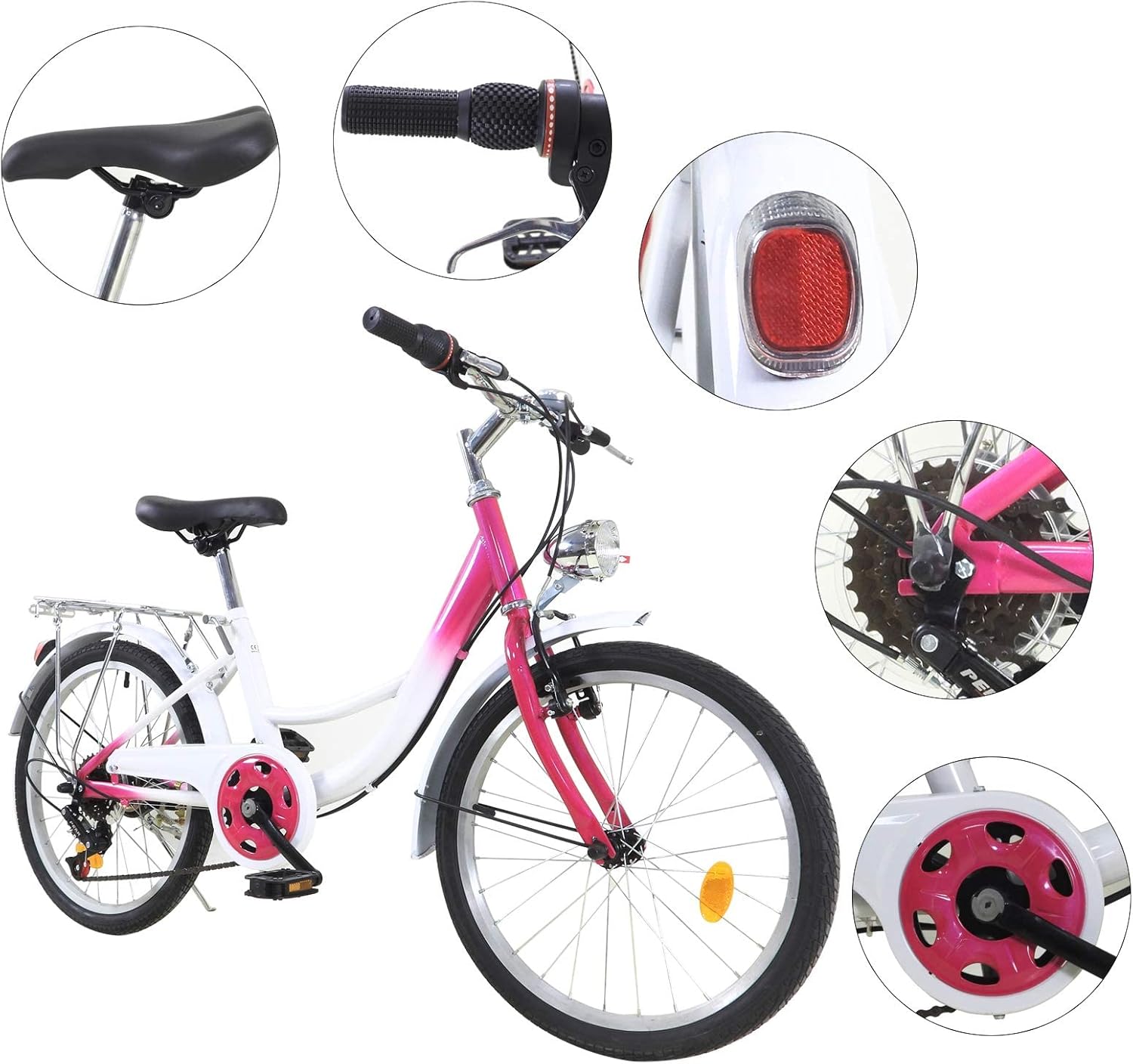 Jetzt entdecken: Lightakai 20 Inch Children’s Bike, 6 Gears, Children’s Bicycle, Girls‘ Bicycle, Pink Children’s Bike, City Bike with Lamp for Children, Suitable from 110 cm to 140 cm