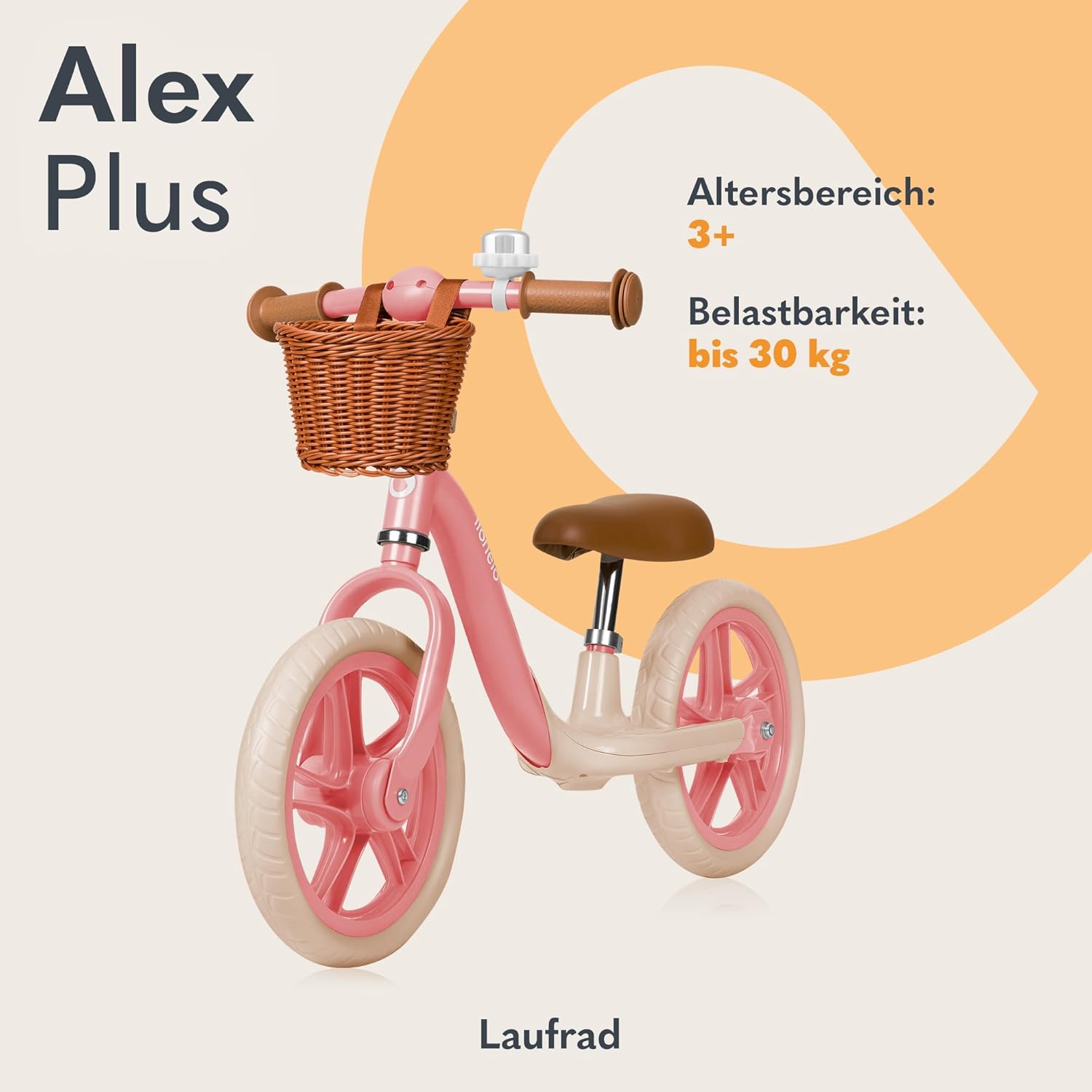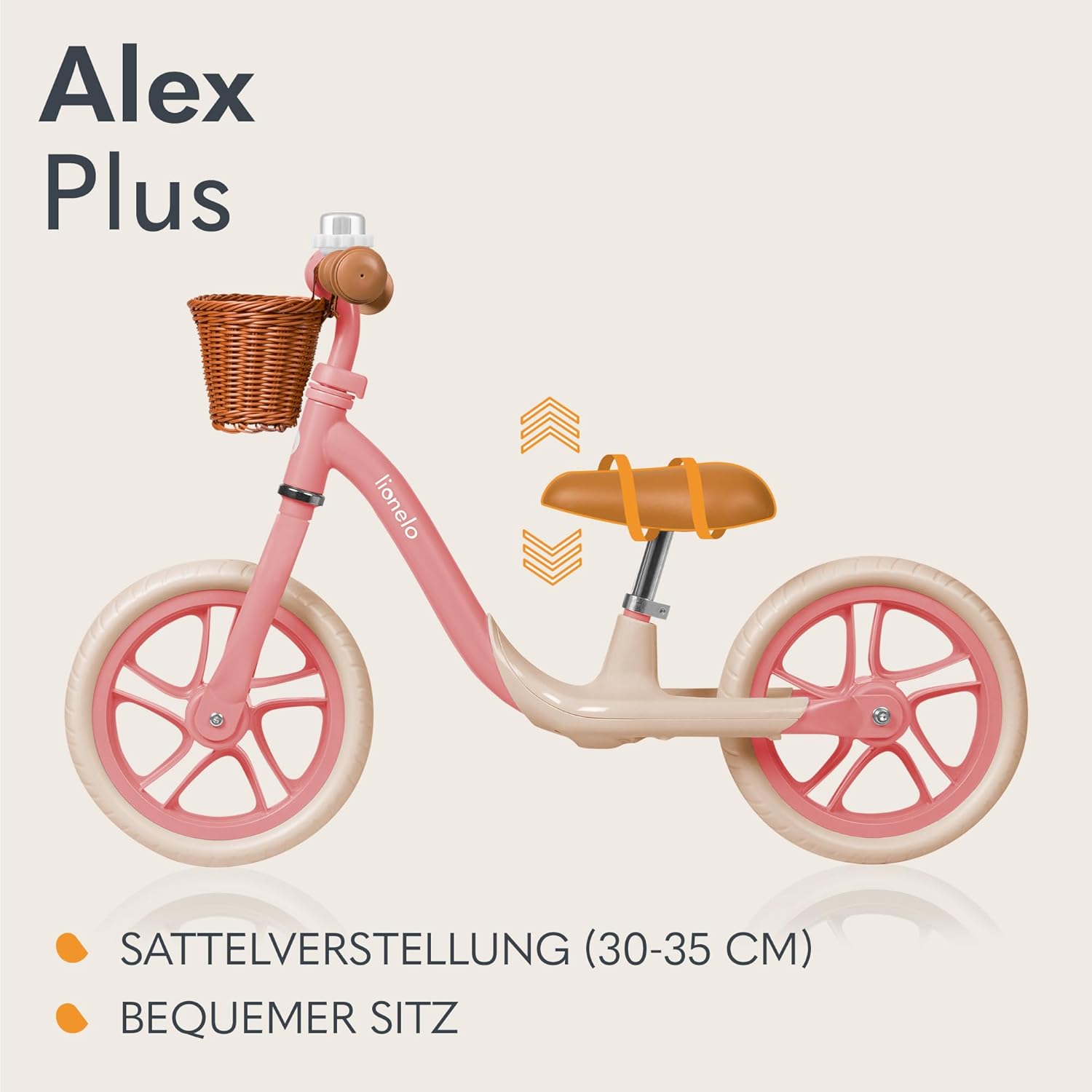 Jetzt entdecken: Lionelo Alex Plus Children’s Balance Bike up to 30 kg, from 3 Years, EVA Foam Wheels 30.5 cm, Running Board Basket, Adjustable Seat and Handlebars, Non-Slip Handle, Lightweight 3.4 kg