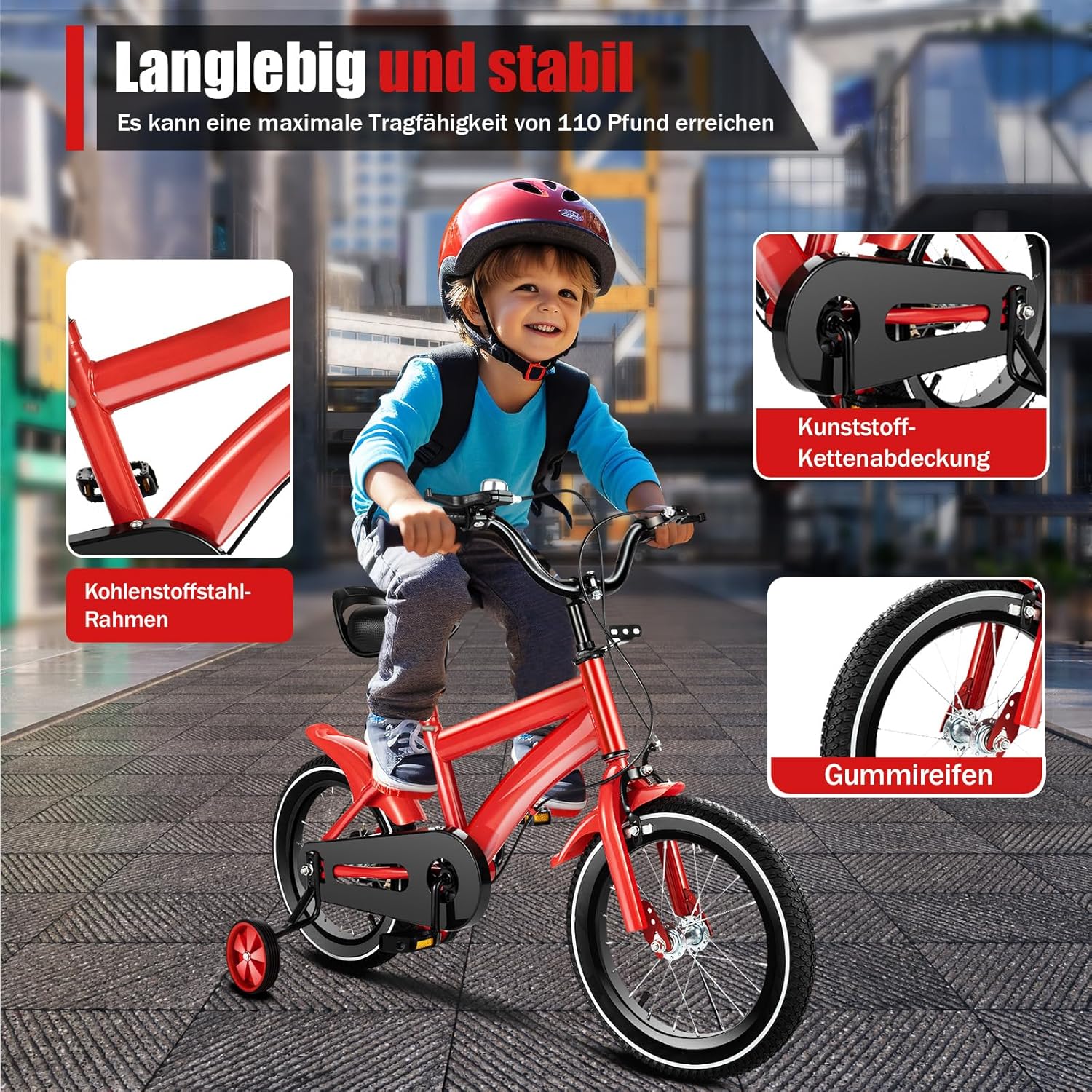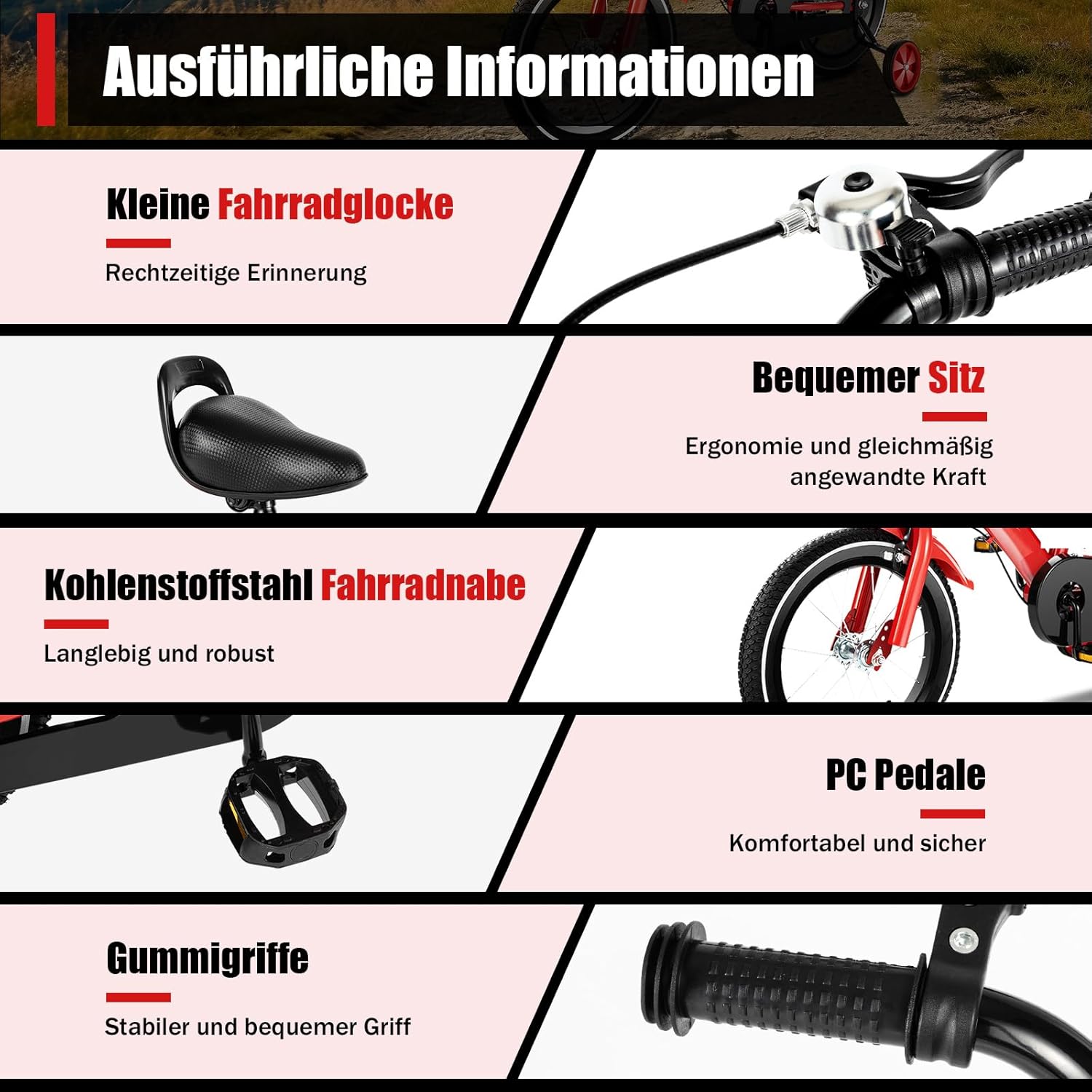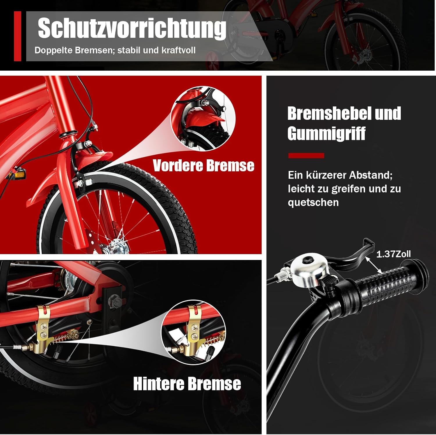 Mit dem LKHDONG 14 Inch Children’s Bike, for Boys and Girls from 3-6 Years, Height-Adjustable Training Vehicles, Bicycle for Children with Stabilisers and Dual Brake System (Red) bekommst du Qualität, Komfort und Stil – perfekt für deine nächste Tour.