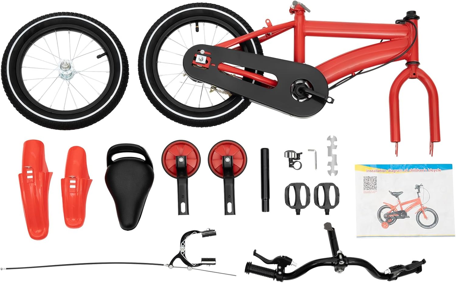 Top-Angebot: LKHDONG 14 Inch Children’s Bike, for Boys and Girls from 3-6 Years, Height-Adjustable Training Vehicles, Bicycle for Children with Stabilisers and Dual Brake System (Red)