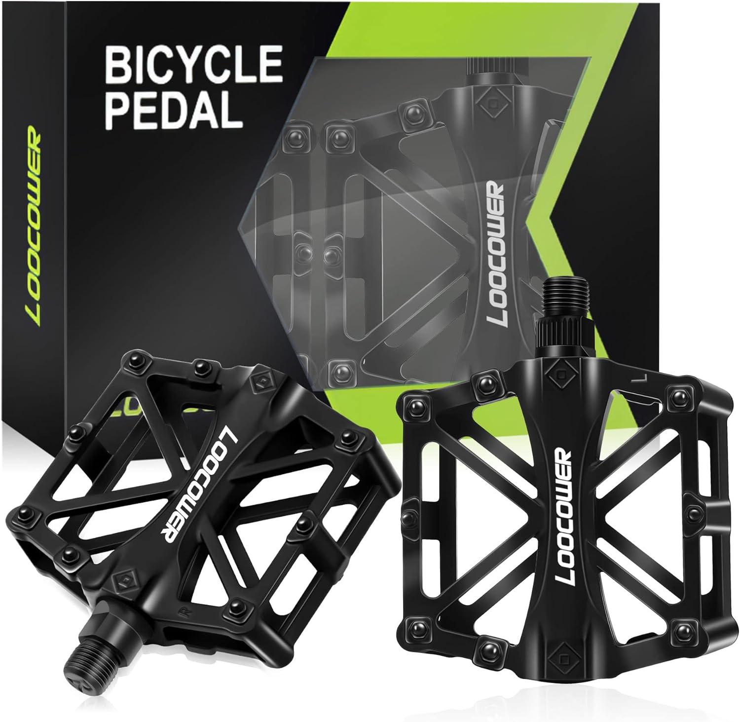 Top-Angebot: Loocower Bicycle Cycling Bike Pedals, Aluminium Alloy Anti Skid Mountain Pedals for 9/16 Inch with Free Installation Tool