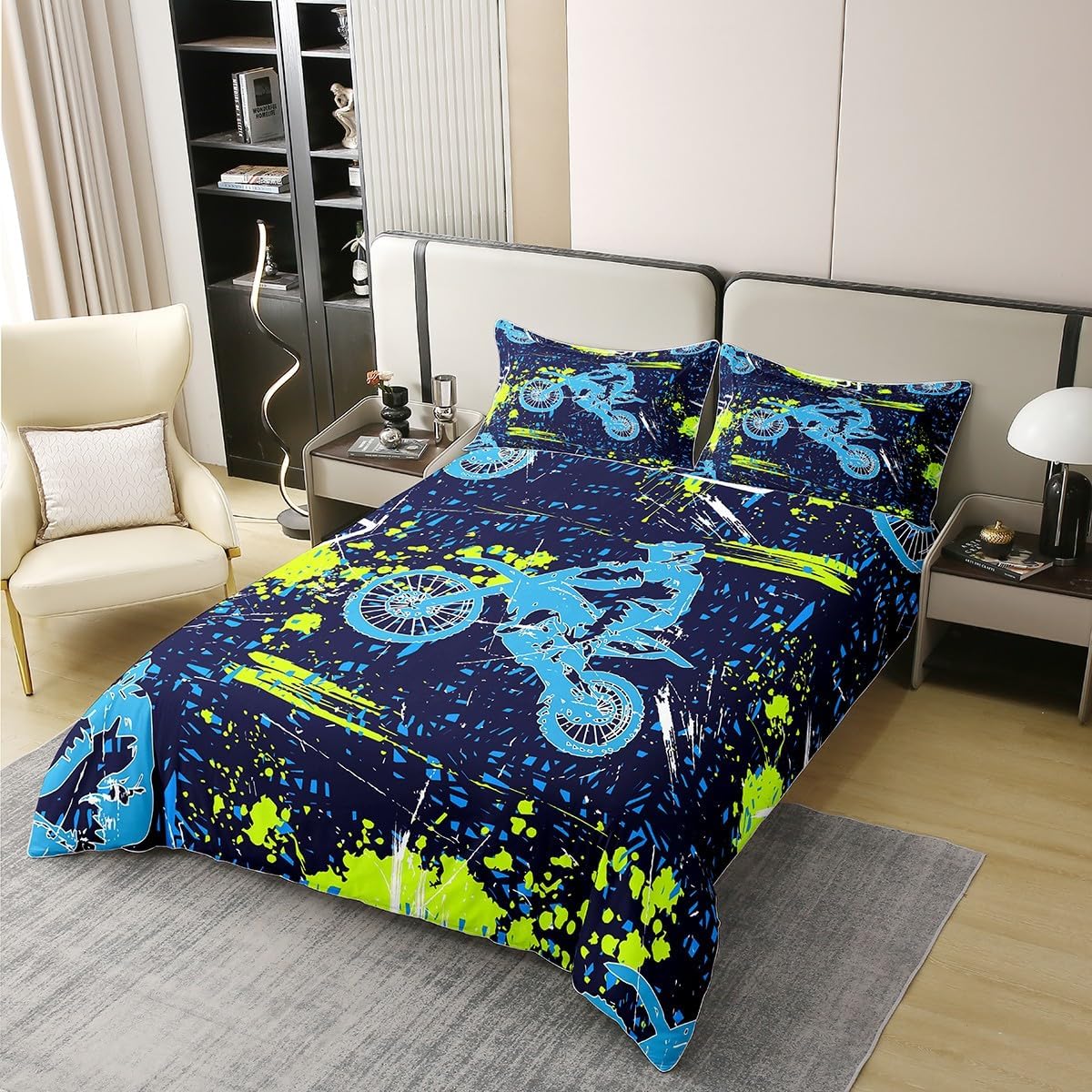 Top-Angebot: Loussiesd Dirty Bicycle Children’s Bed Linen Set, 220 x 240 cm, 100% Cotton, Extreme Sports Bed Set, Boys and Girls Decor Race, Motocross Driver Duvet Cover Set, Urban Bedroom Duvet Cover