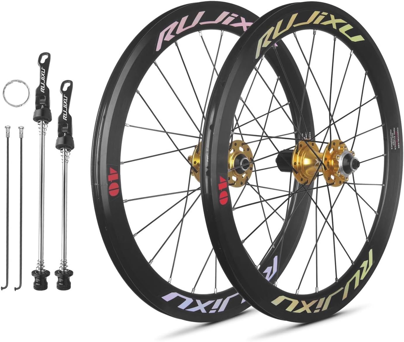 Jetzt entdecken: LSRRYD BMX Wheelset (Front and Rear Wheel) 20 Inch Folding Bike Wheelset 106/451 Aluminium Rim Disc Brake Quick Release Bicycle Wheels for 8-12-Speed Cassettes (Gold Hub, 451)