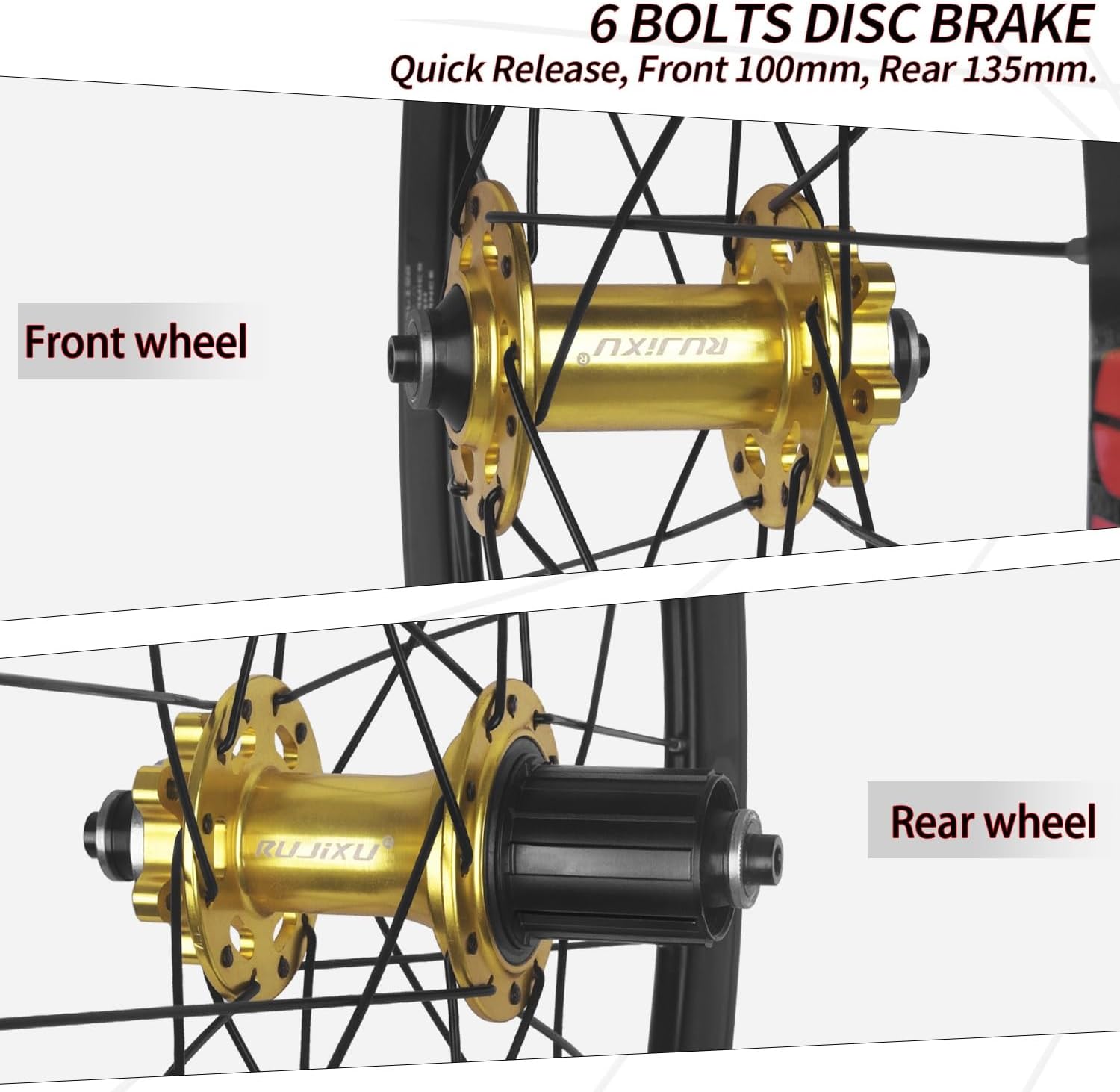 Top-Angebot: LSRRYD BMX Wheelset (Front and Rear Wheel) 20 Inch Folding Bike Wheelset 106/451 Aluminium Rim Disc Brake Quick Release Bicycle Wheels for 8-12-Speed Cassettes (Gold Hub, 451)