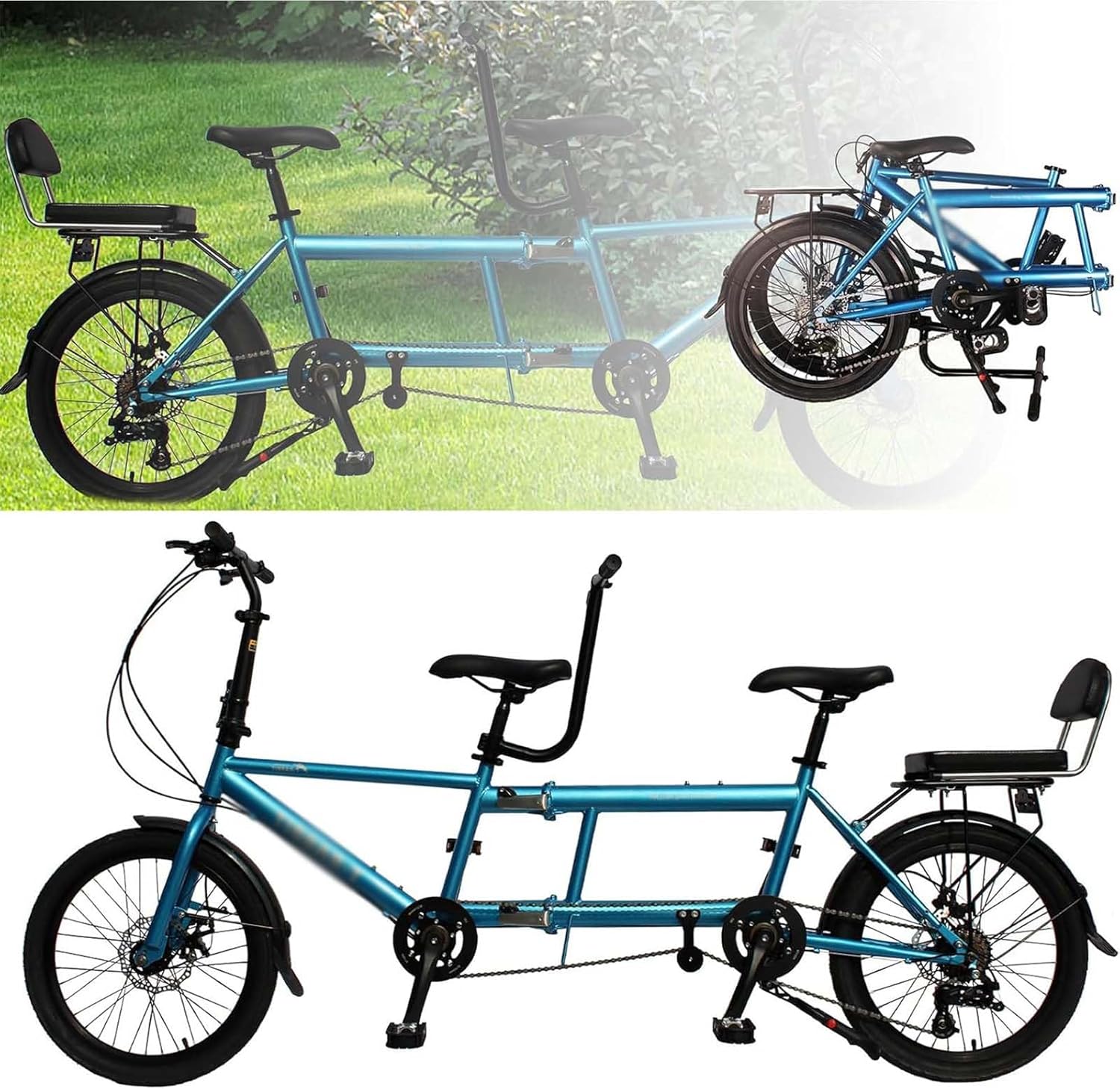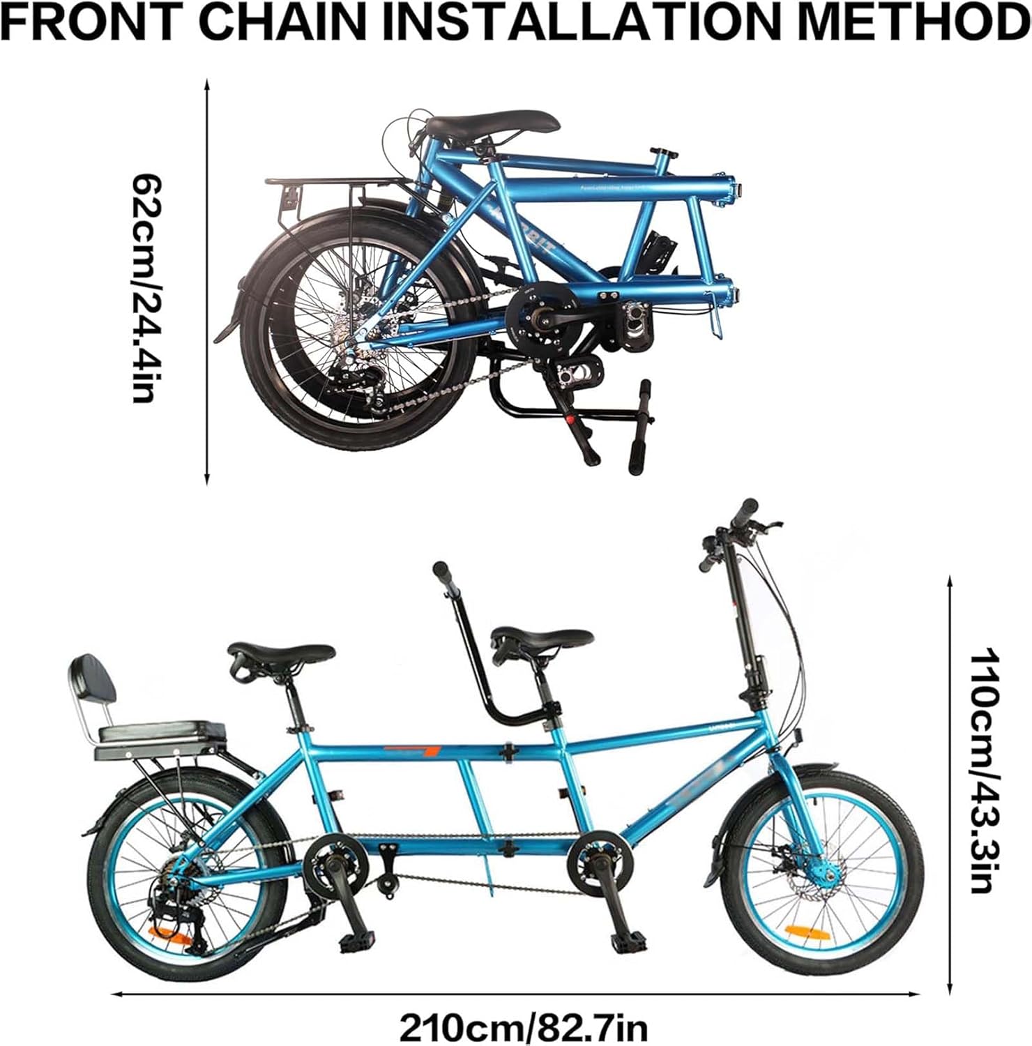 Top-Angebot: MAYFABD Tandem Bicycle Tandem Folding Bike Foldable Tandem Adult Beach Cruiser Bicycle Adjustable 7 Speeds Maximum Load 300 kg Family Travel and Couple Rides