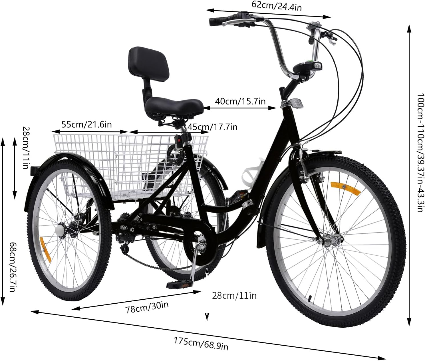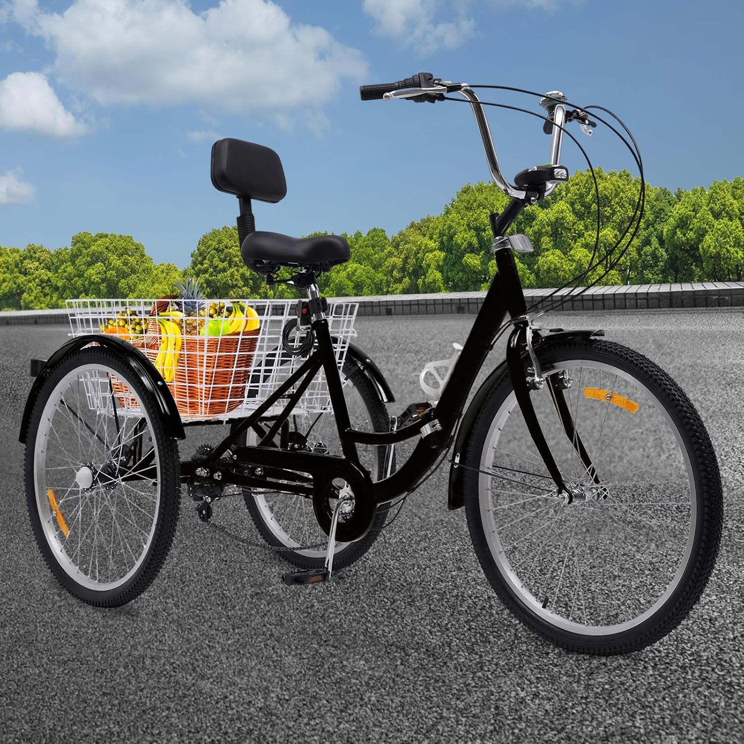 Top-Angebot: MccoMMon 24 Inch Three-Wheel Bicycle for Adults, 7 Speed Foldable Tricycle, Height Adjustable, with Backrest and Shopping Basket, Suitable for Middle-Aged People and Elderly Driving