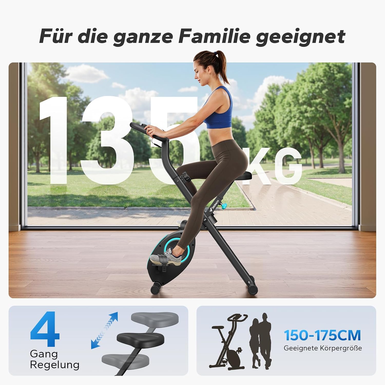 Jetzt entdecken: MERACH Heimtrainer Fahrrad Klappbar, Hometrainer Fahrrad mit LCD Monitor, Magnetisches Ergometer Heimtrainer mit Bequemem Sitzkissen, Fitnessbikes für Zuhause, Platzsparend, 136KG