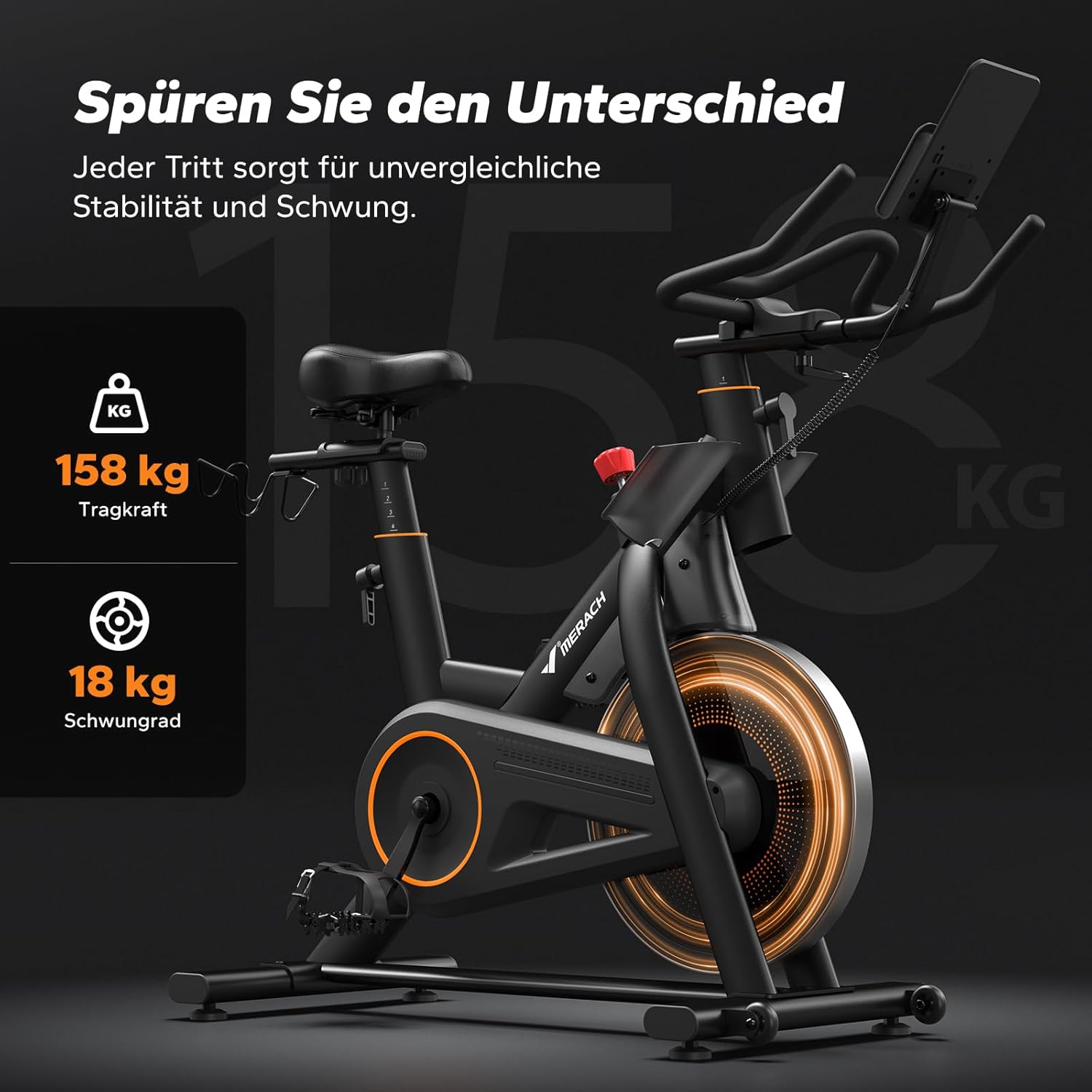 Das MERACH Heimtrainer Fahrrad mit Magnetischem Widerstand, Leises Hometrainer Fahrrad mit 18 kg Schwungrad, Verbesserter Stoßdämpfender Luftkissensattel, Indoor Cycling Bike mit Eigener App, Bis 158KG ist ideal für Sportbegeisterte, die ein zuverlässiges Fahrrad suchen.