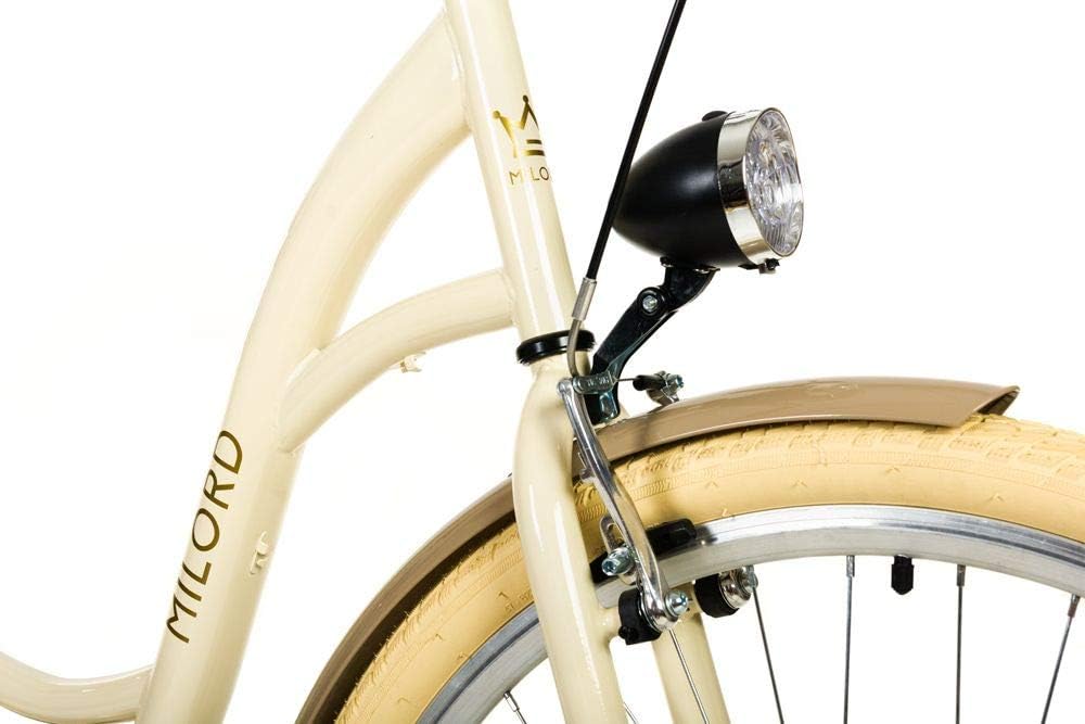 Mit dem MILORD. 26 Inch 1-Speed Cream Brown Comfort Bicycle with Basket Dutch Bike Women’s Bicycle City Bike City Bike Retro Vintage bekommst du Qualität, Komfort und Stil – perfekt für deine nächste Tour.