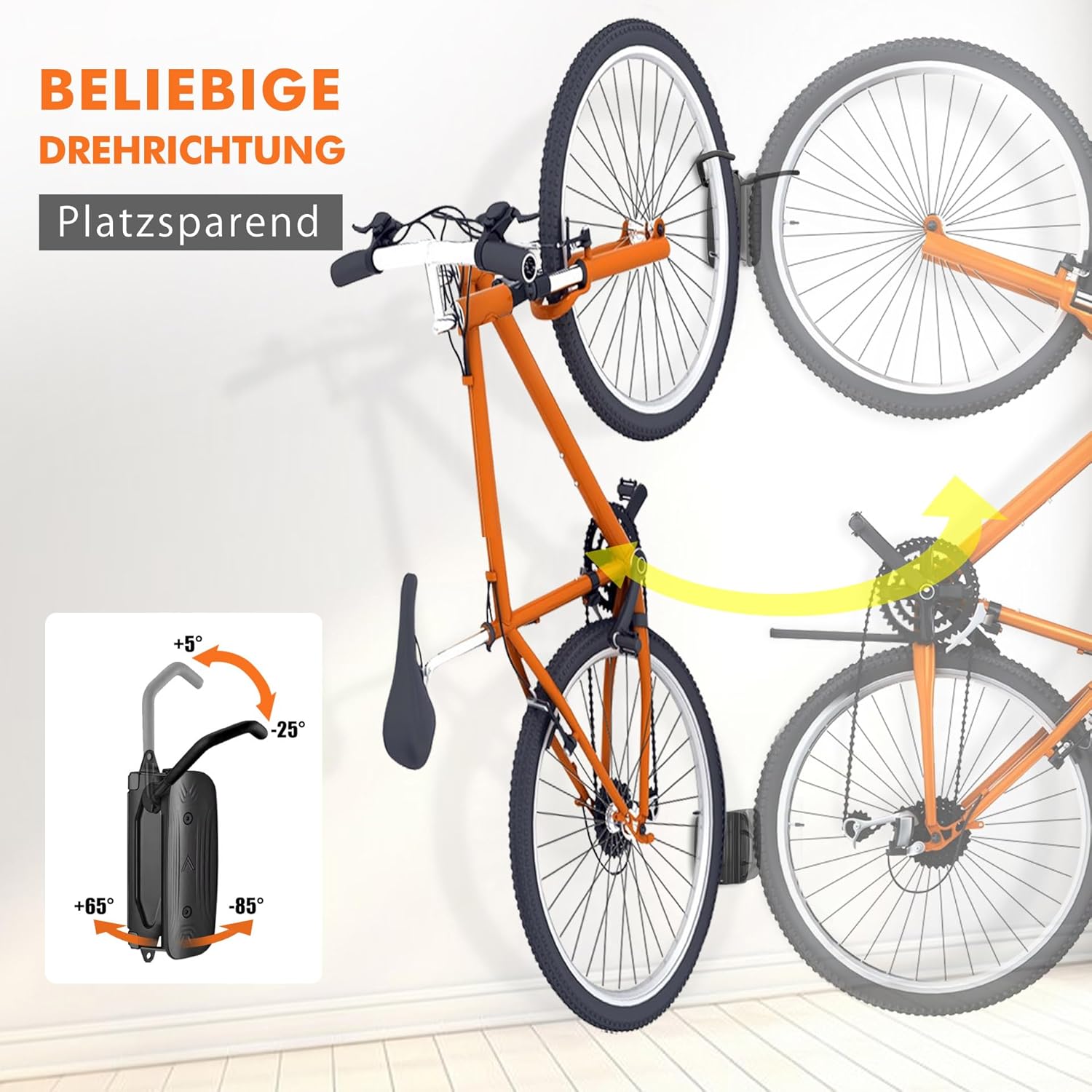 Top-Angebot: Mimoke Pivoting Bicycle Wall Mount Vertical Bicycle Stand – Bicycle Mount Wall for Garage – MTB & Road Bike (Black, Pack of 3)