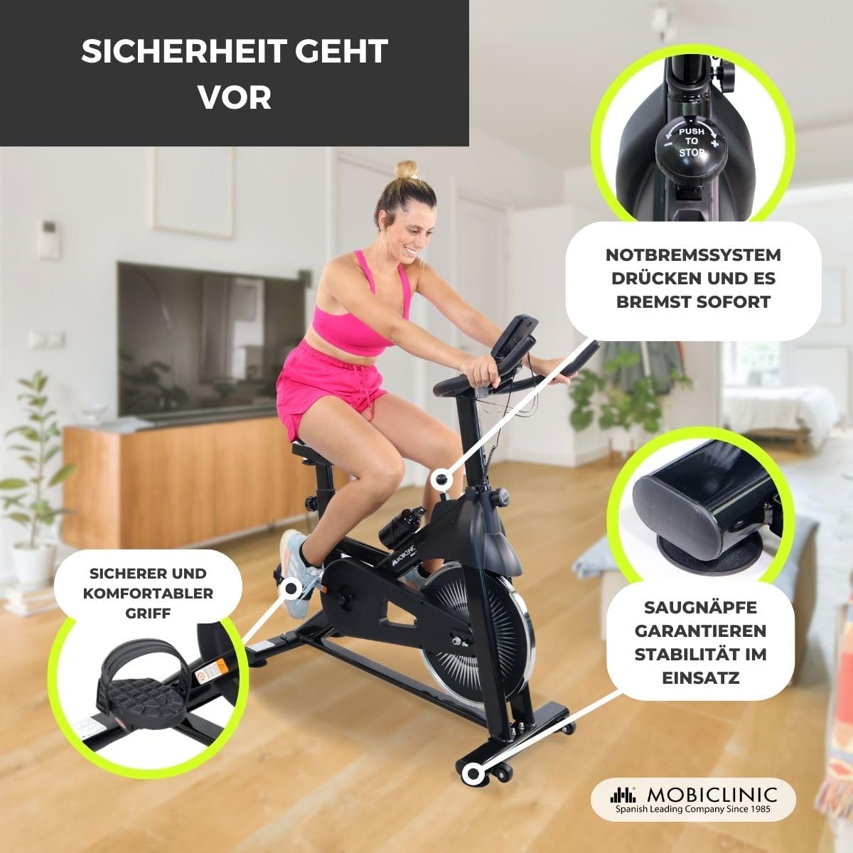 Mit dem Mobiclinic® Fitness, Exercise Bike, Various Resistance Levels, Teide, Fully Adjustable, LCD Screen, Heart Rate Monitor, 6 kg Flywheel, Mobile Phone Holder, Indoor Bike bekommst du Qualität, Komfort und Stil – perfekt für deine nächste Tour.
