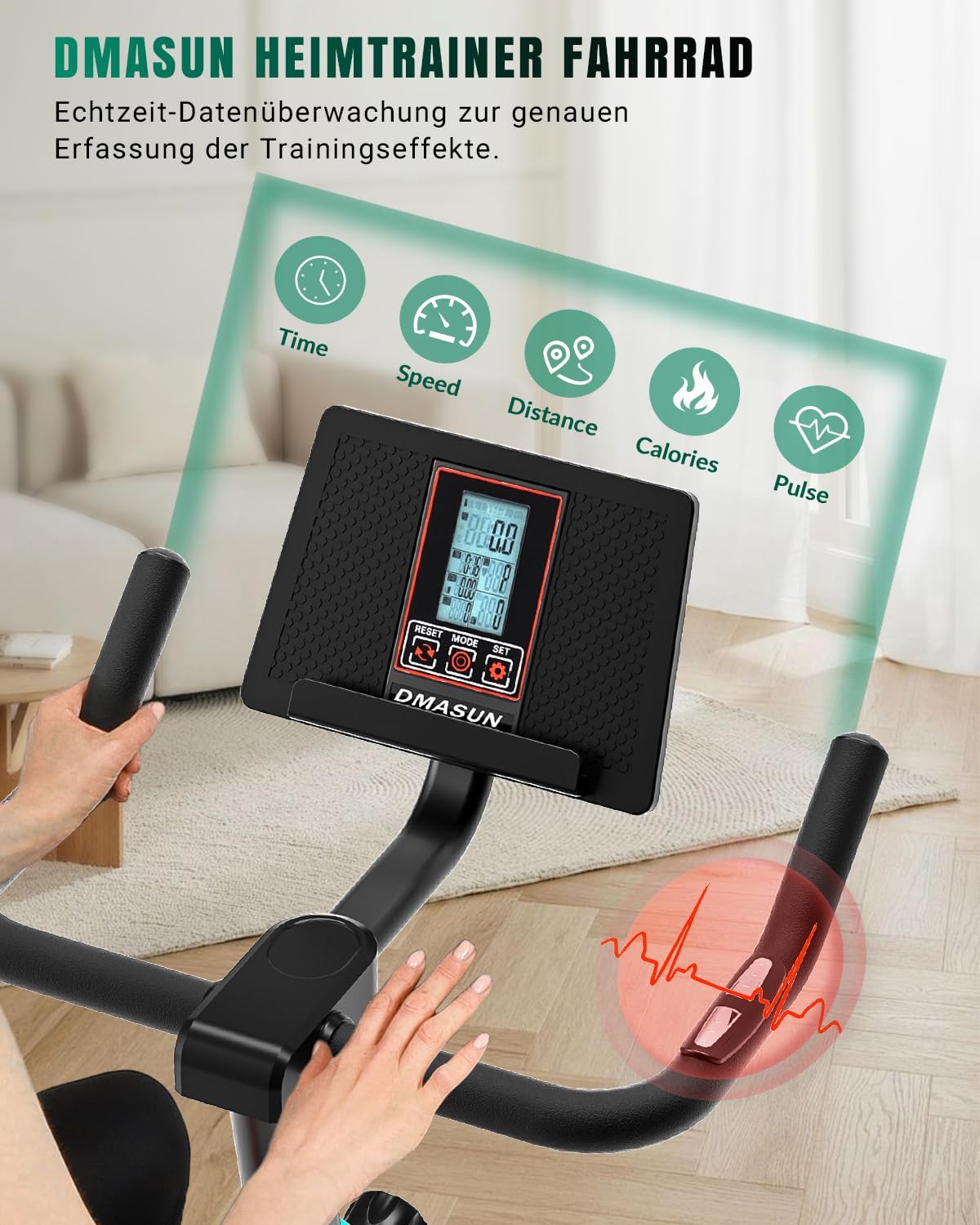 Jetzt entdecken: Neu Heimtrainer Fahrrad, DMASUN Hometrainer Fahrrad, Verstellbarer Widerstand, Extra Bequemer Sitz & Sitzbezug, Großer Tablet-Halter, Leises Stabiles Fitnessbike für Zuhause, Bis 160kg Belastbar